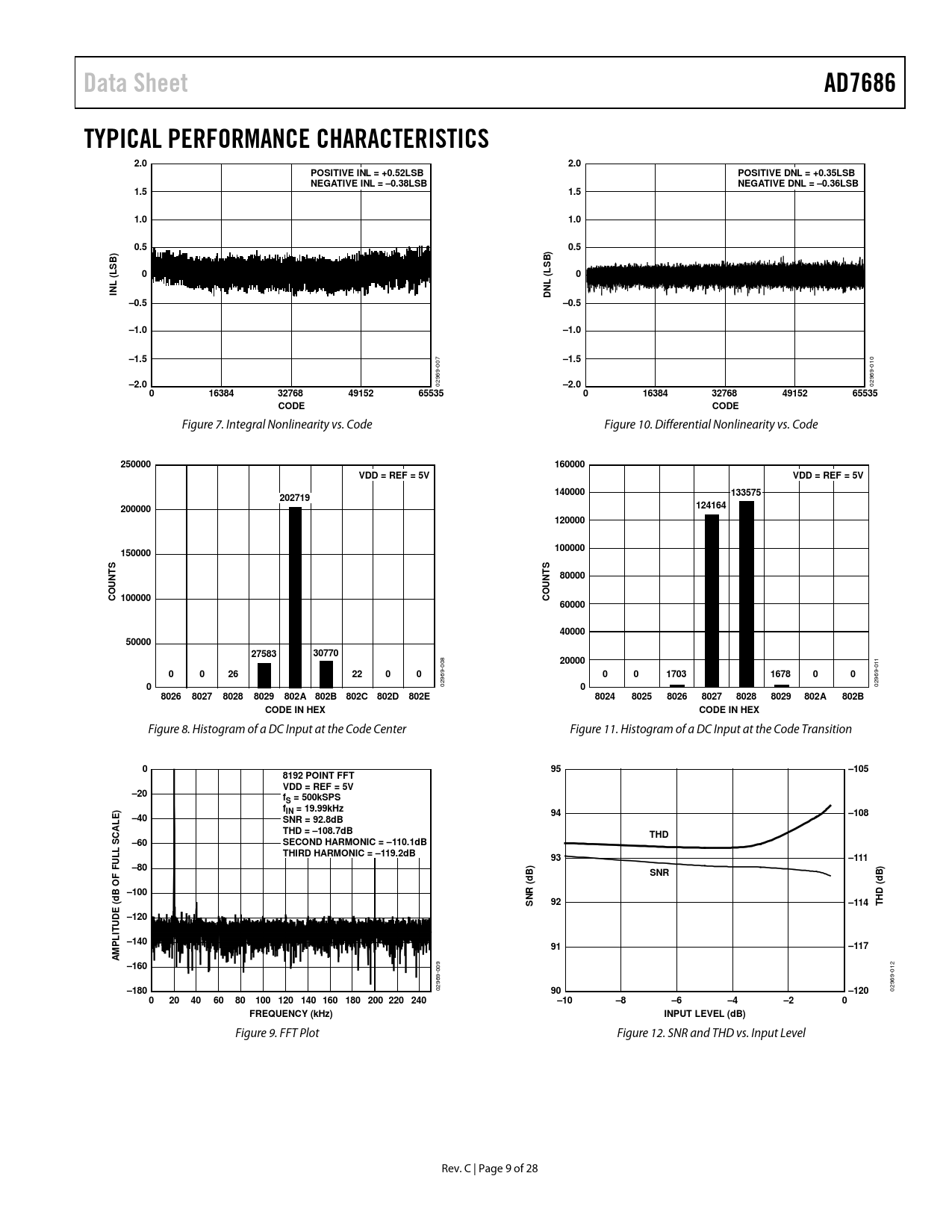 Data Sheet. AD7686. TYPICAL PERFORMANCE CHARACTERISTICS. 2.0. POSITIVE INL = +0.52LSB. POSITIVE DNL = +0.35LSB