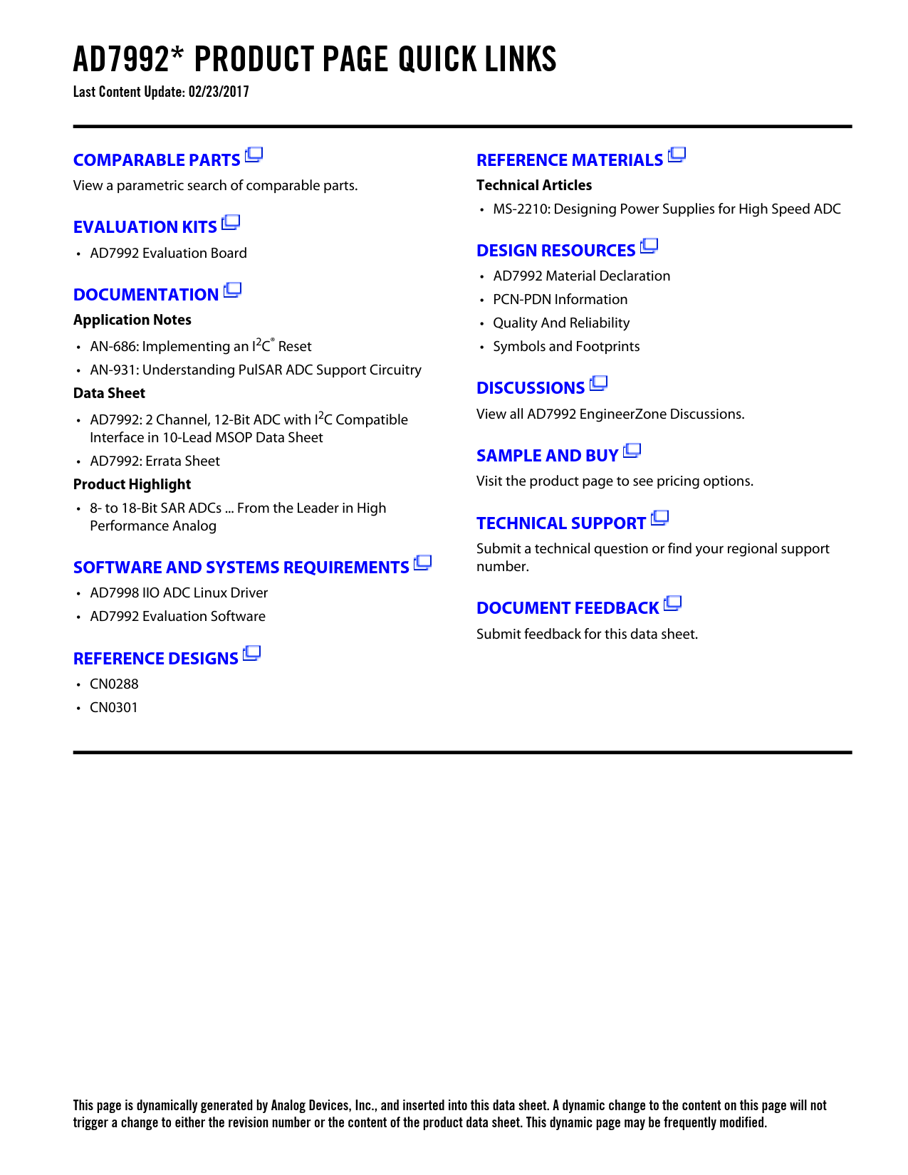 This page is dynamically generated by Analog Devices, Inc., and inserted into this data sheet. A dynamic change to the content on this page will not trigger a change to either the revision number or the content of the product data sheet. This dynamic page may be frequently modified.