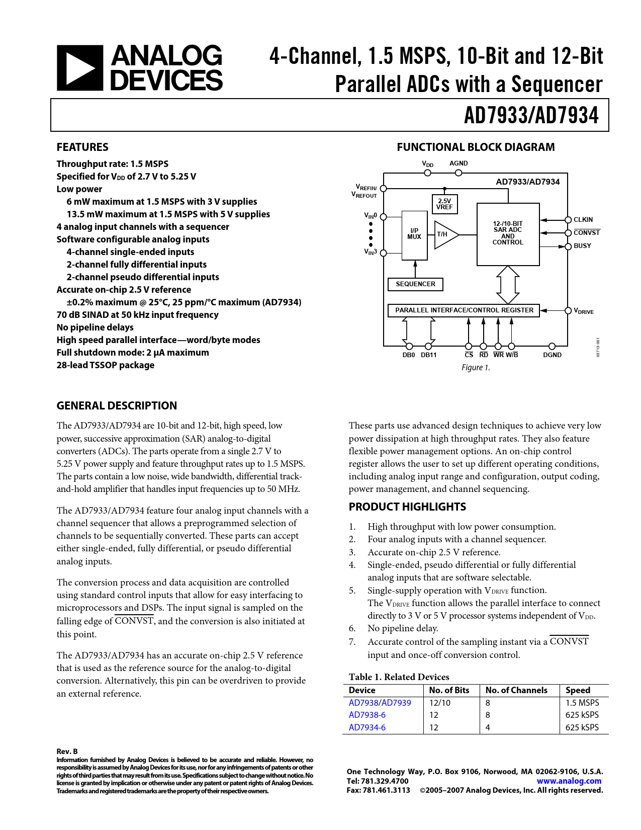 Datasheet AD7933, AD7934 (Analog Devices)