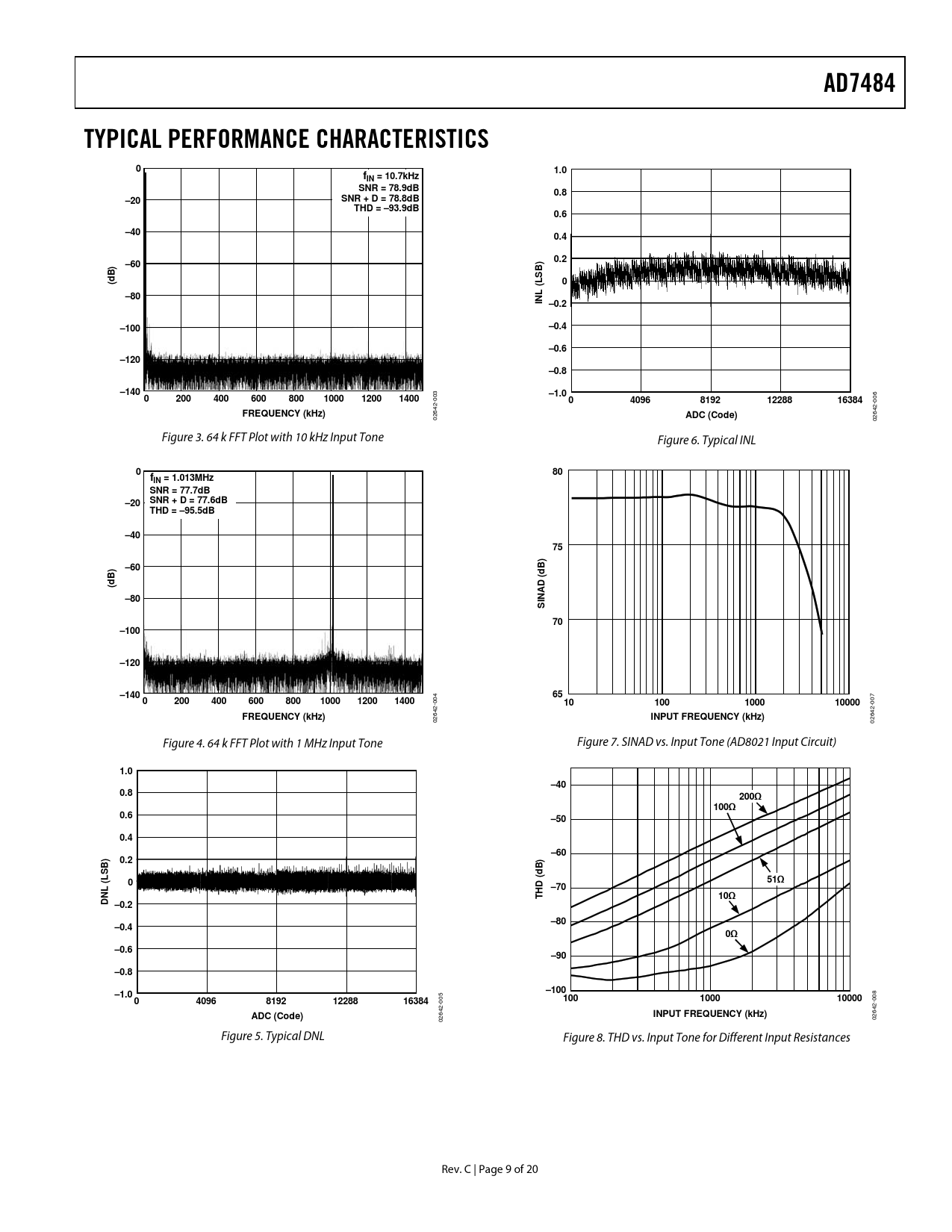 AD7484. TYPICAL PERFORMANCE CHARACTERISTICS. 1.0. fIN = 10.7kHz. SNR = 78.9dB. 0.8. –20. SNR + D = 78.8dB. THD = –93.9dB. 0.6. –40. 0.4. 0.2. –60