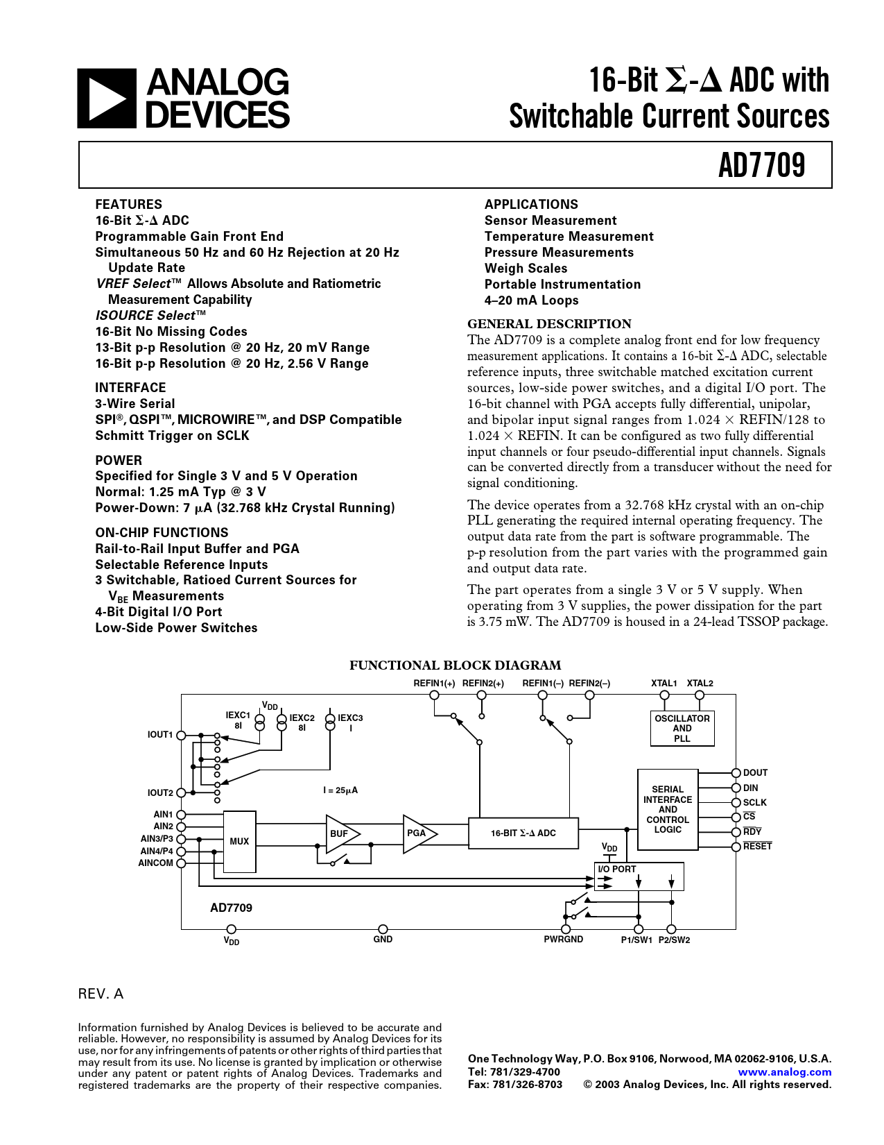 | 页数 / 页 | 33 / 1 — 16-Bit. ADC with. Switchable Current Sources. AD7709. FEATURES. … |