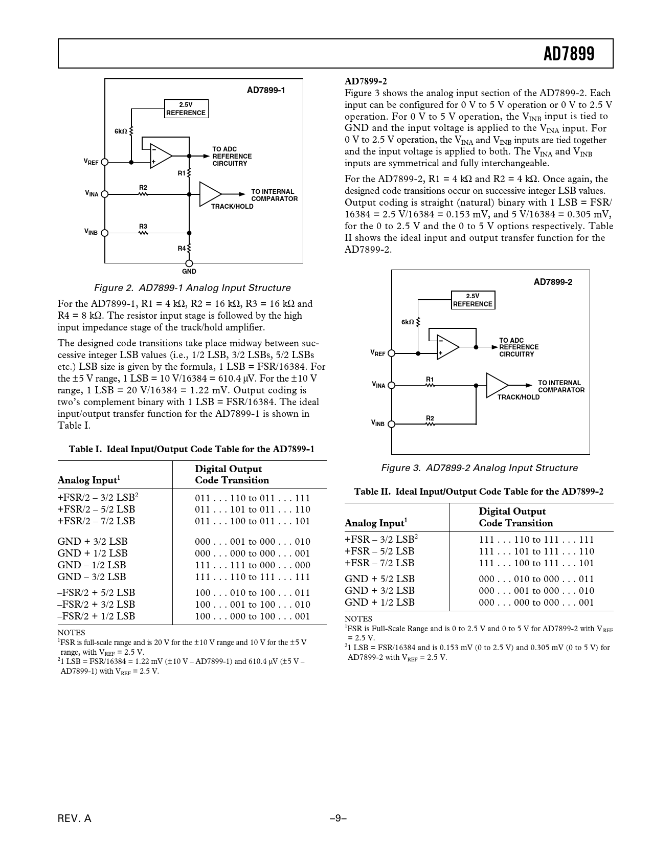 Analog Input1 Code Transition Table II. Ideal Input/Output Code Table for the AD7899-2