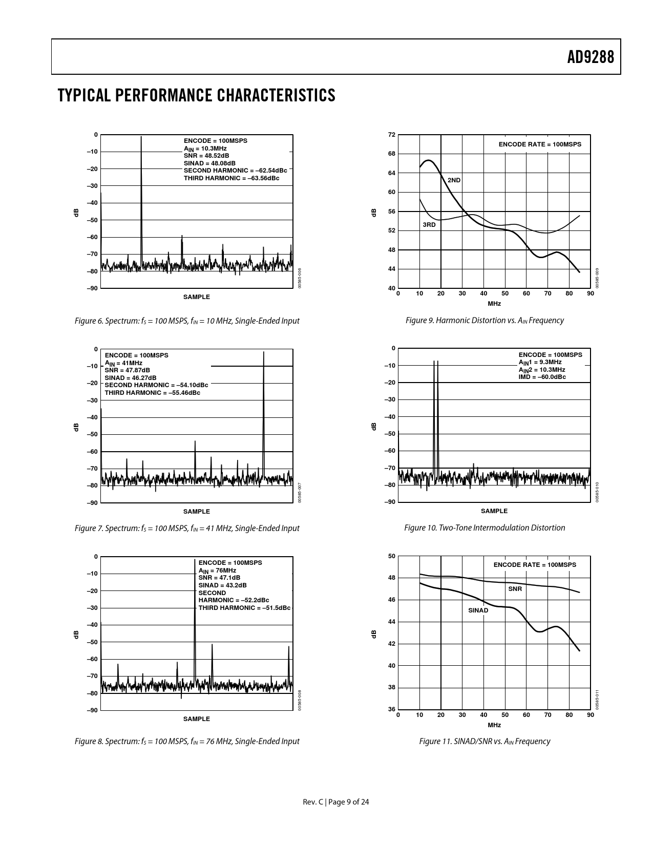 | 页数 / 页 | 25 / 10 — AD9288. TYPICAL PERFORMANCE CHARACTERISTICS. ENCODE = 100MSPS. ENCODE … |