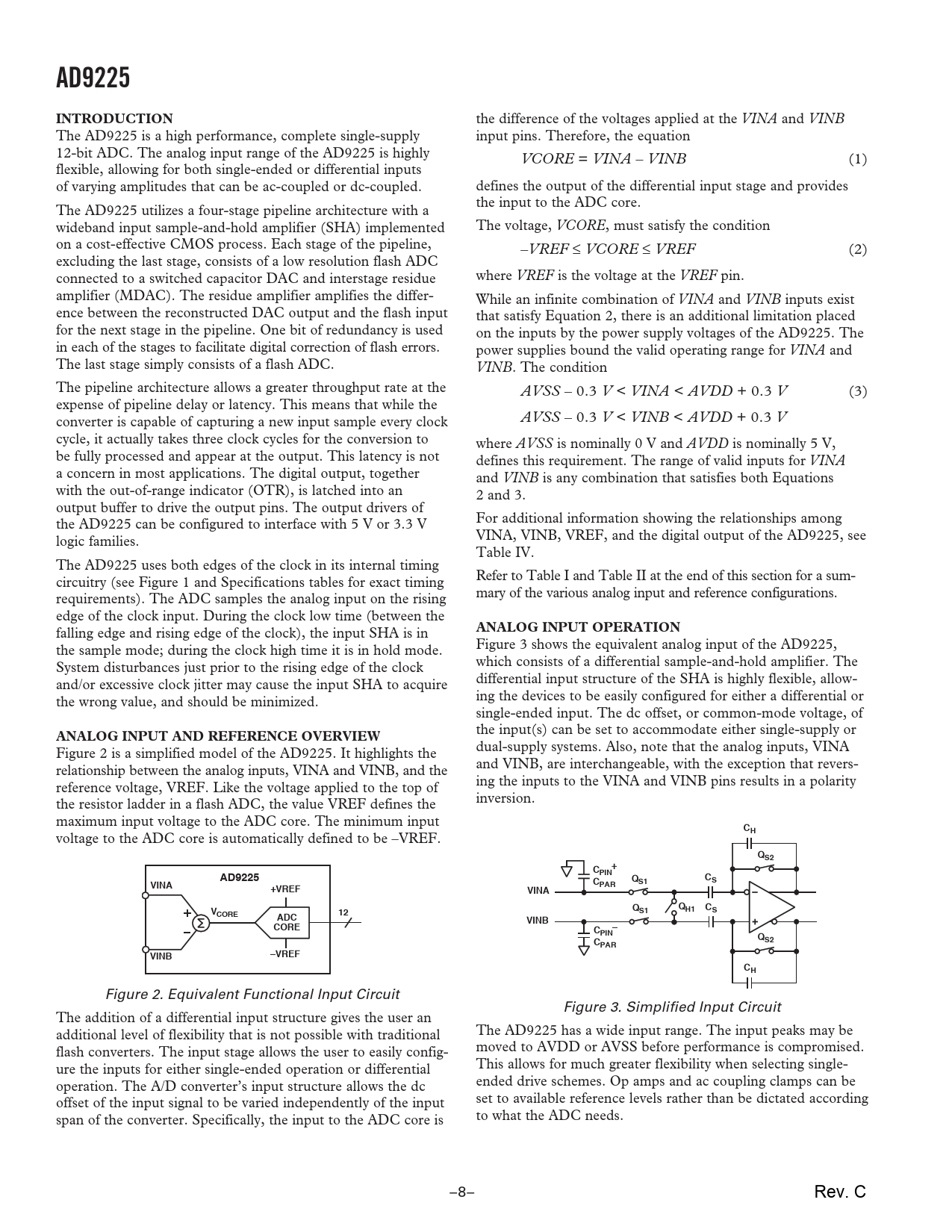 页数 / 页26 / 9 — AD9225. INTRODUCTION. ANALOG INPUT OPERATION. ANALOG INPUT AND REFERENCE …