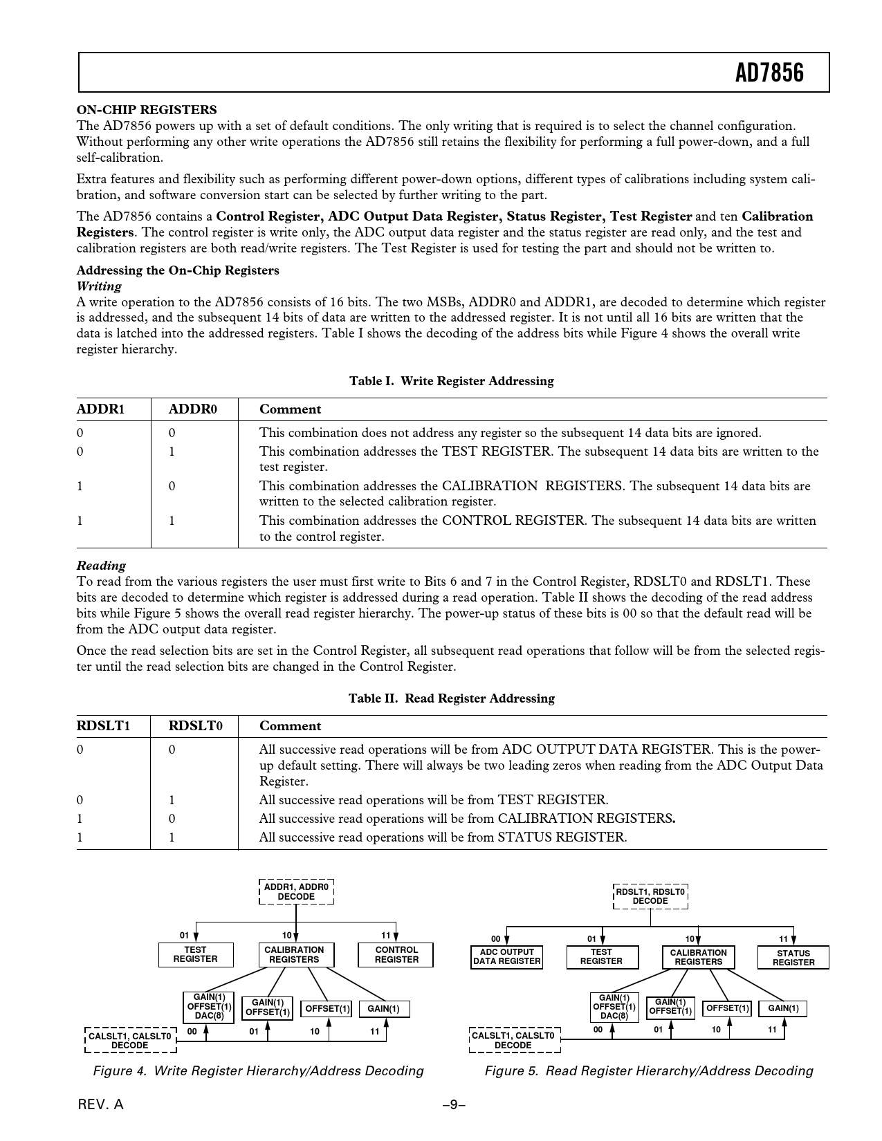 Figure 4. Write Register Hierarchy/Address Decoding Figure 5. Read Register Hierarchy/Address Decoding REV. A –9–