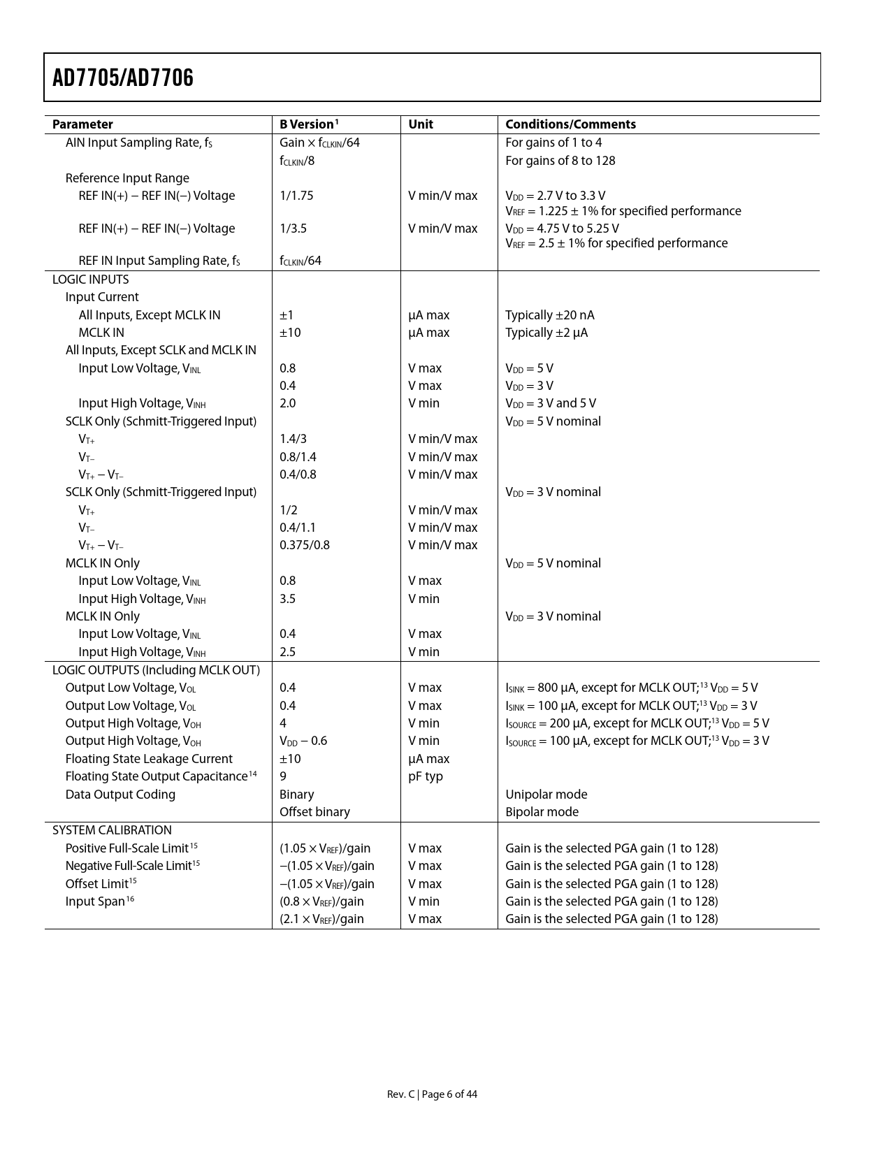 页数 / 页44 / 6 — AD7705/AD7706. Parameter B. Version1 Unit. Conditions/Comments