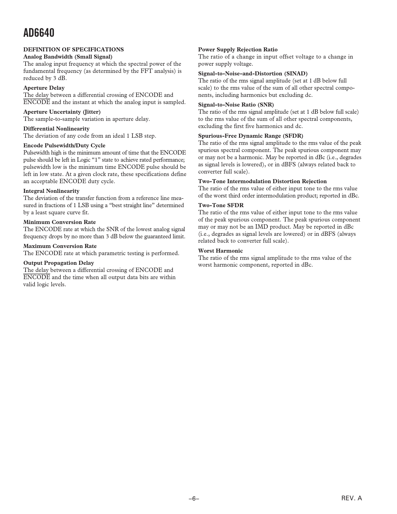 页数 / 页25 / 7 — AD6640. DEFINITION OF SPECIFICATIONS. Power Supply Rejection Ratio. …