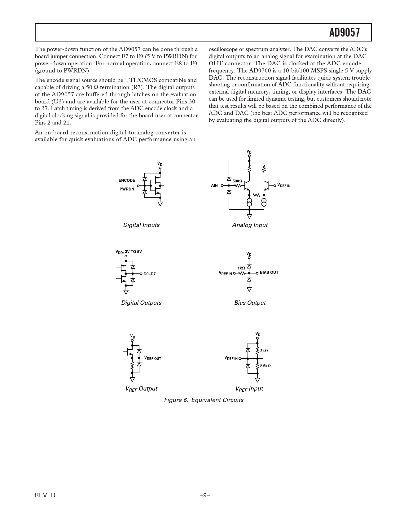 AD9057 ENCODE 500 AIN VREF IN PWRDN VDD, 3V TO 5V D0–D7 BIAS OUT VREF OUT 2.5k