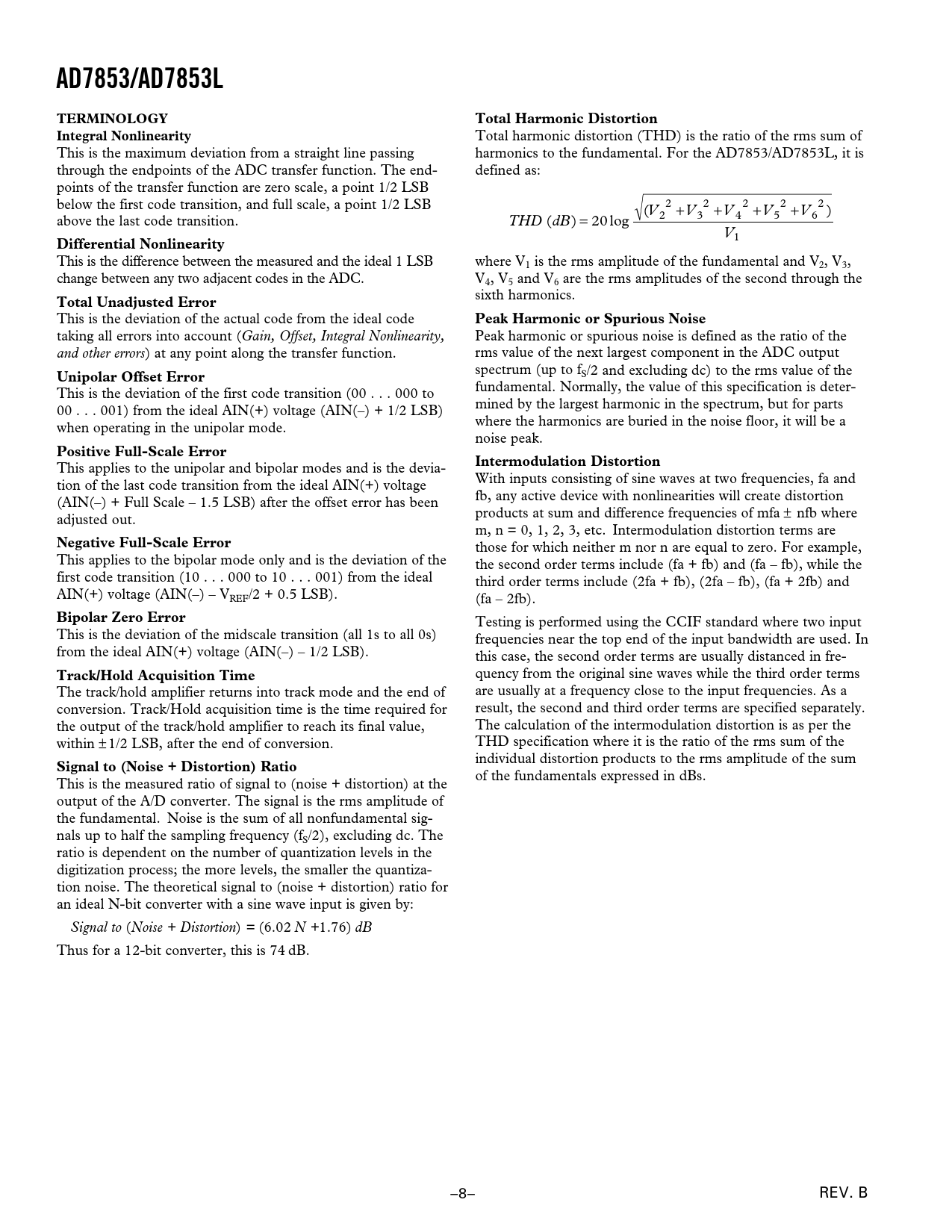 页数 / 页34 / 8 — AD7853/AD7853L. TERMINOLOGY. Total Harmonic Distortion. Integral …