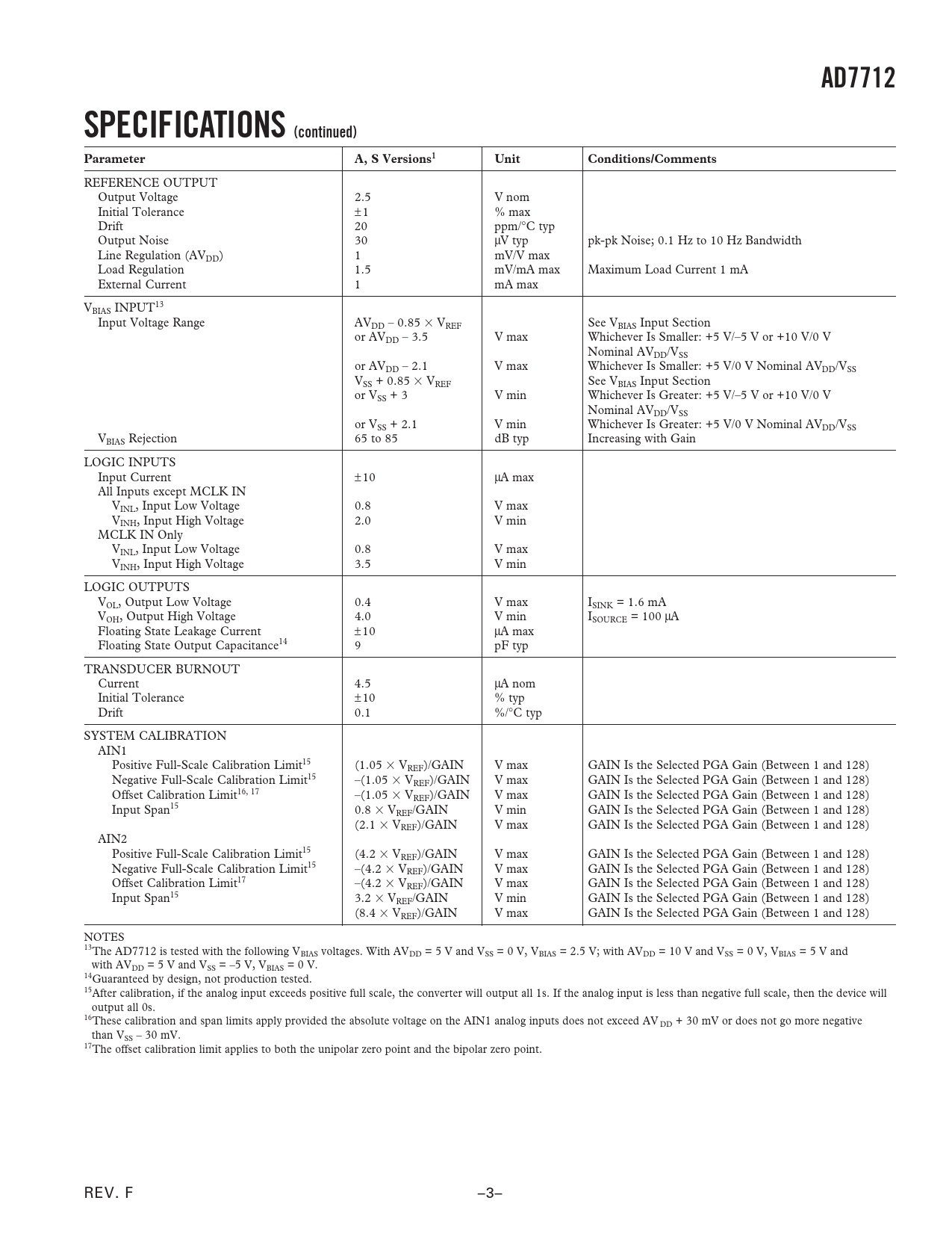 AD7712 SPECIFICATIONS (continued) Parameter A, S Versions1 Unit Conditions/Comments