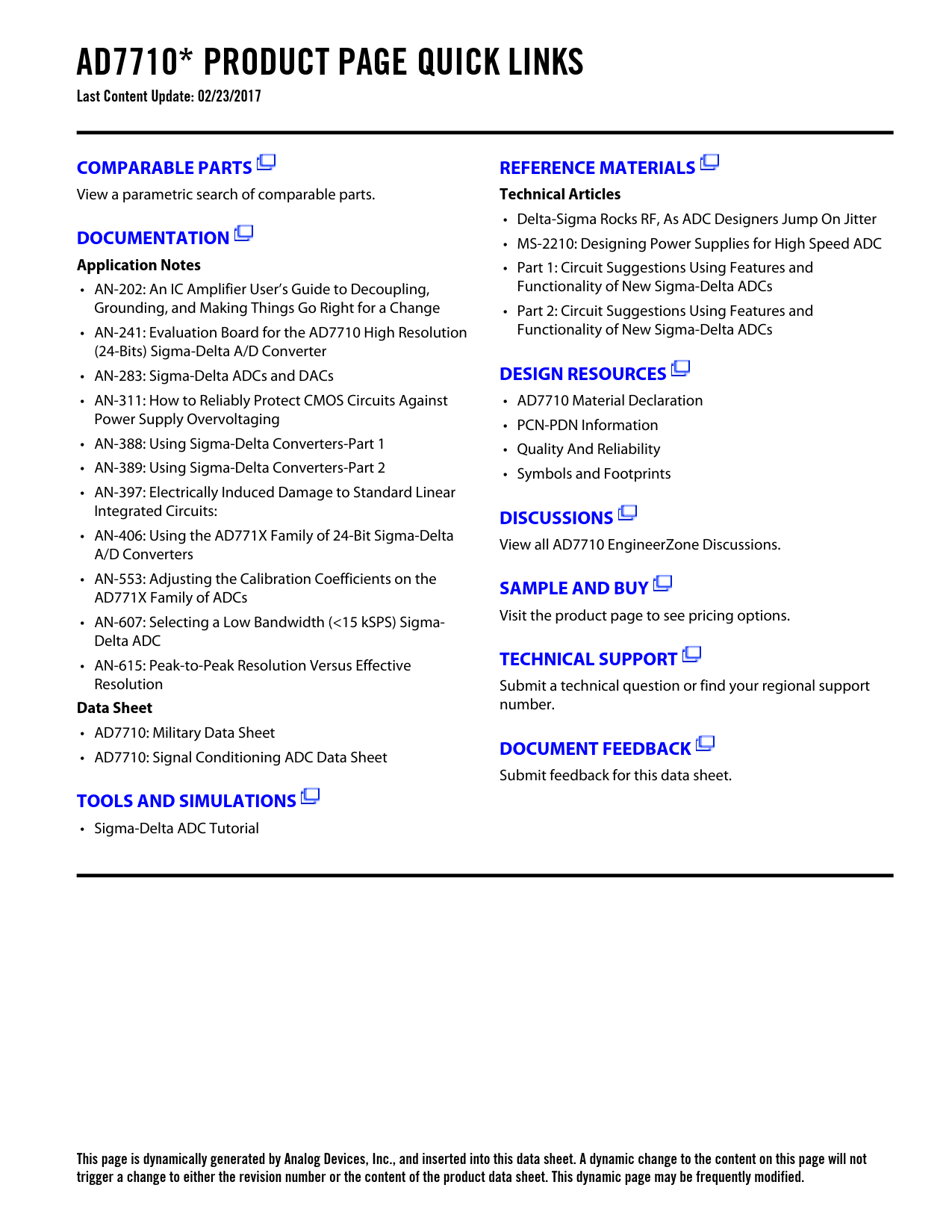 页数 / 页33 / 2 — AD7710* PRODUCT PAGE QUICK LINKS Last Content Update: 02/23/2017. …