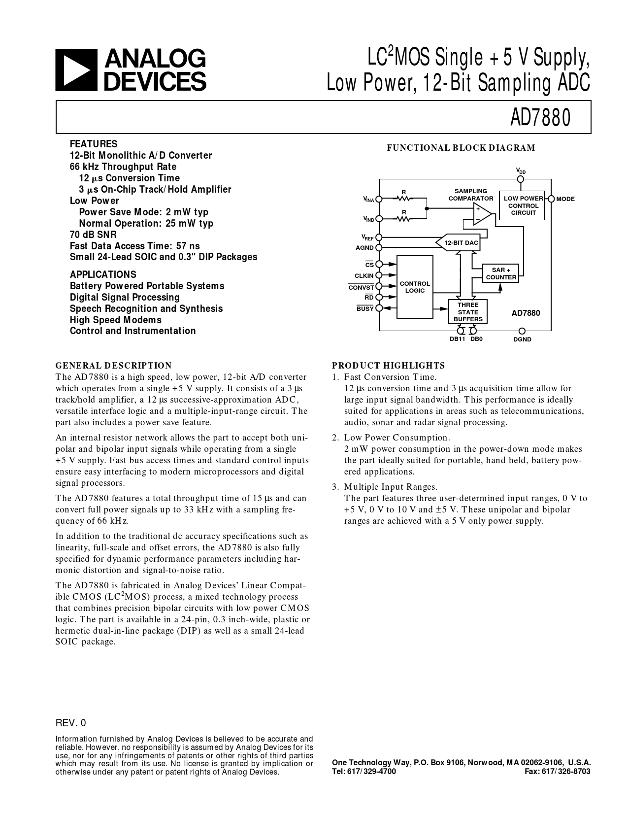 页数 / 页17 / 1 — LC2MOS Single +5 V Supply,. Low Power, 12-Bit Sampling ADC. AD7880. …
