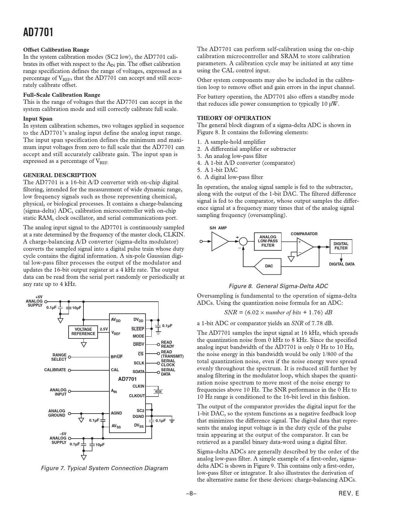 updates the 16-bit output register at a 4 kHz rate. The output data can be read from the serial port randomly or periodically at any rate up to 4 kHz. Figure 8. General Sigma-Delta ADC