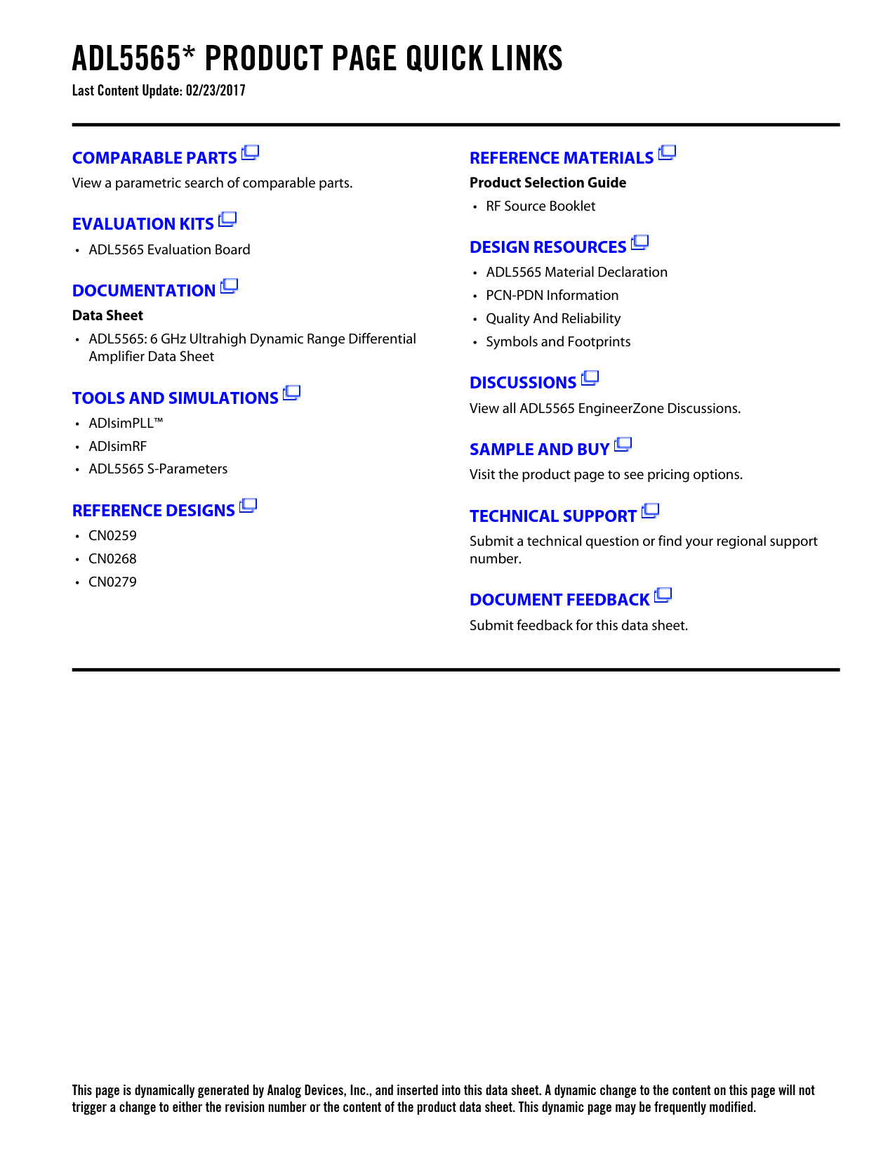 This page is dynamically generated by Analog Devices, Inc., and inserted into this data sheet. A dynamic change to the content on this page will not trigger a change to either the revision number or the content of the product data sheet. This dynamic page may be frequently modified.