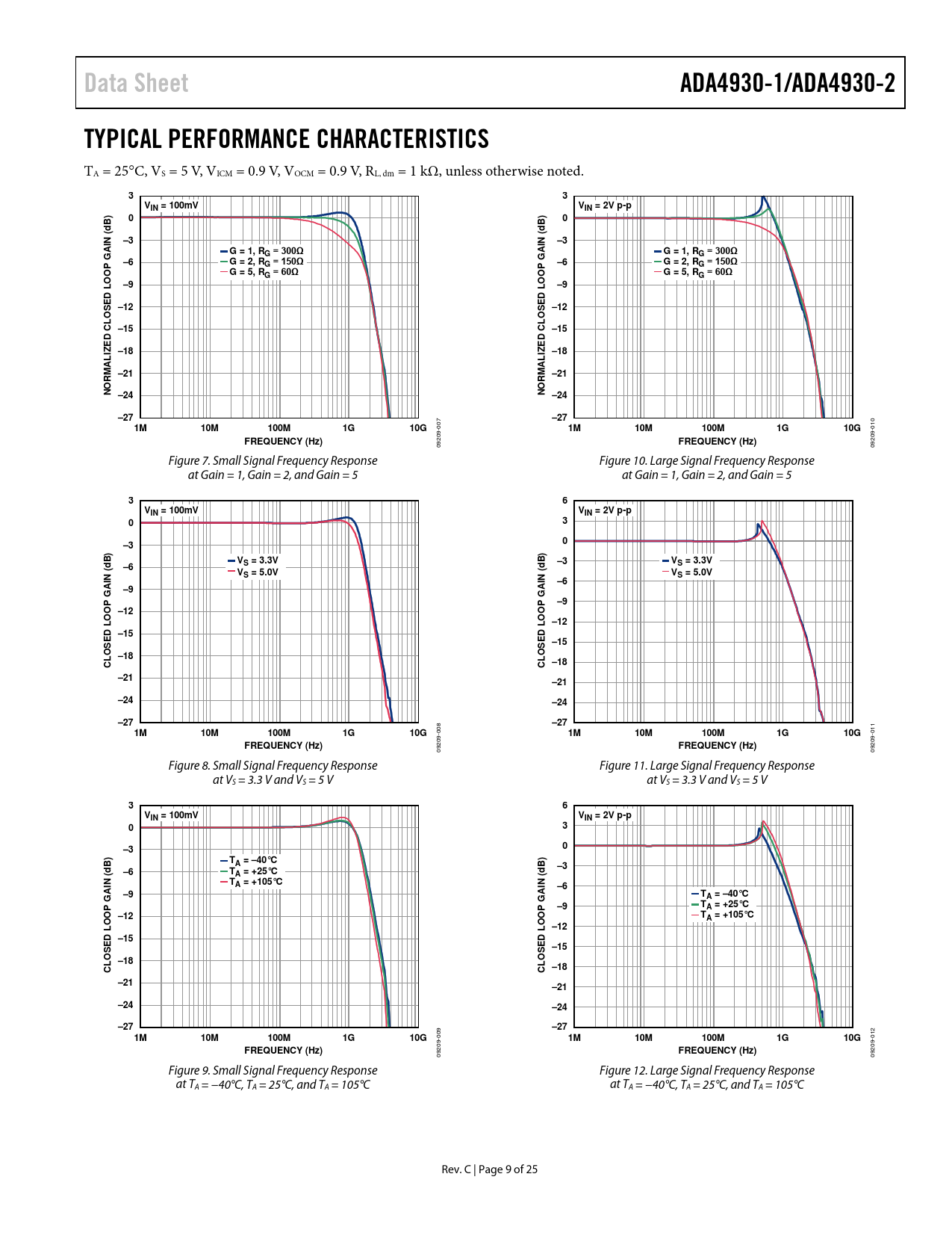 Data Sheet. ADA4930-1/ADA4930-2. TYPICAL PERFORMANCE CHARACTERISTICS. VIN = 100mV. VIN = 2V p-p. G = 1, RG = 300Ω. G = 2, R. G = 150Ω