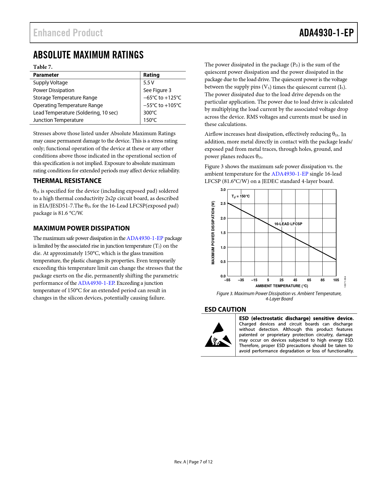 页数 / 页12 / 7 — Enhanced Product. ADA4930-1-EP. ABSOLUTE MAXIMUM RATINGS Table 7. …