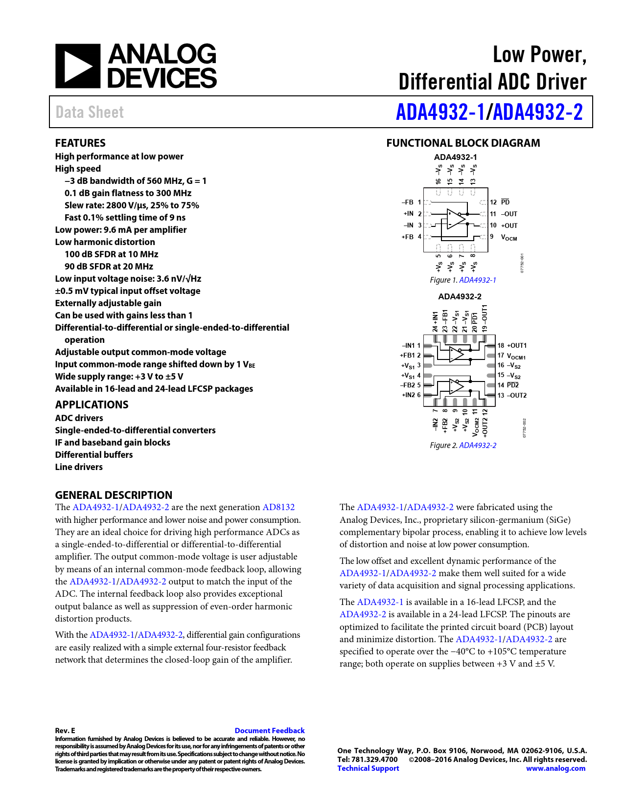 Datasheet ADA4932-1/ADA4932-2 (Analog Devices)