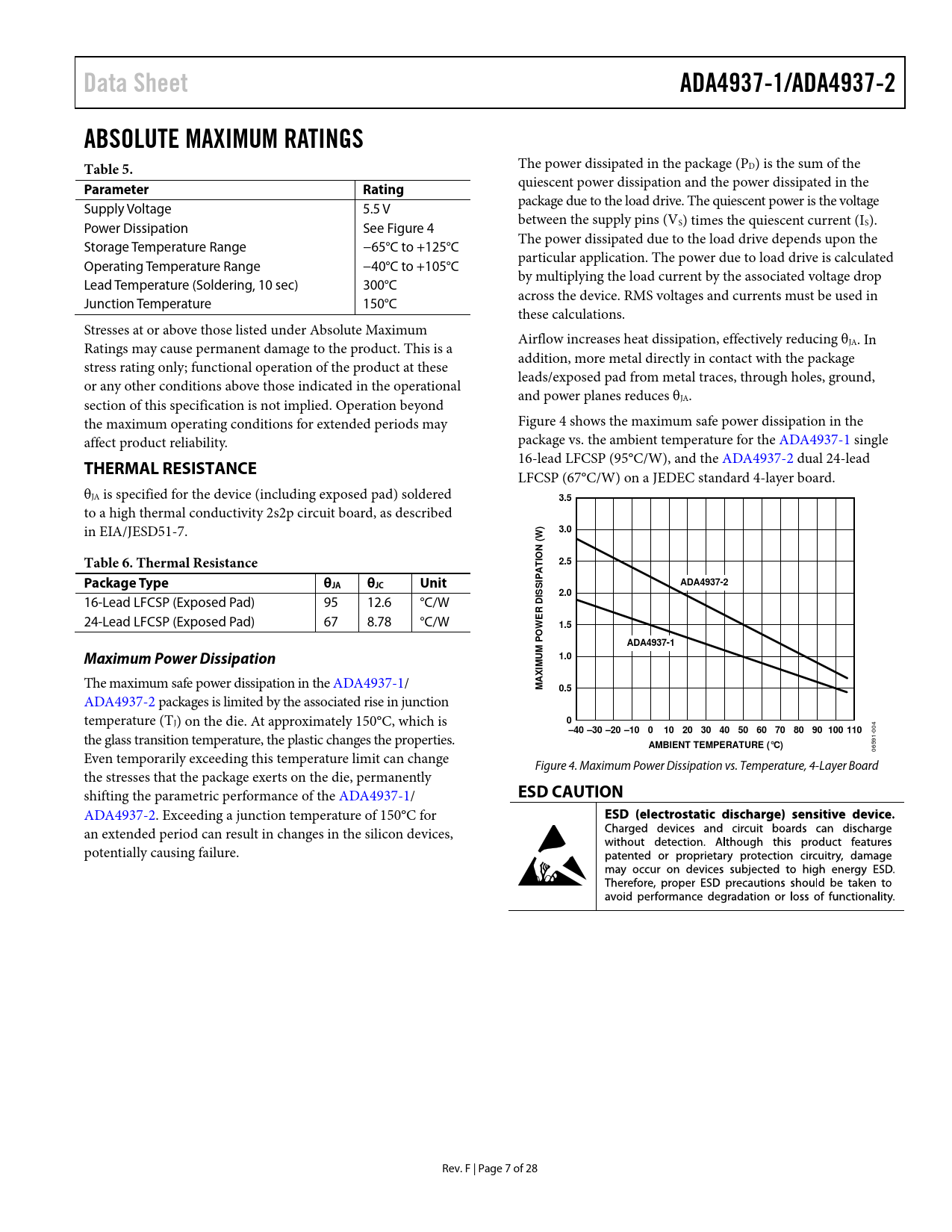 Data Sheet ADA4937-1/ADA4937-2 ABSOLUTE MAXIMUM RATINGS Table 5.