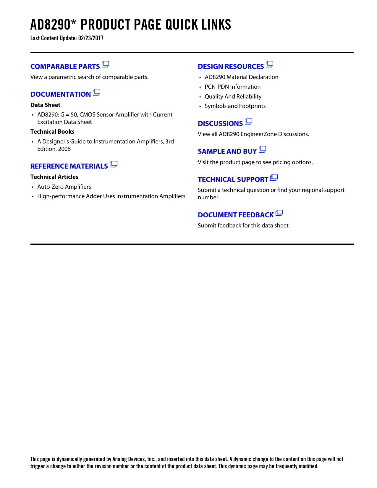 This page is dynamically generated by Analog Devices, Inc., and inserted into this data sheet. A dynamic change to the content on this page will not trigger a change to either the revision number or the content of the product data sheet. This dynamic page may be frequently modified.
