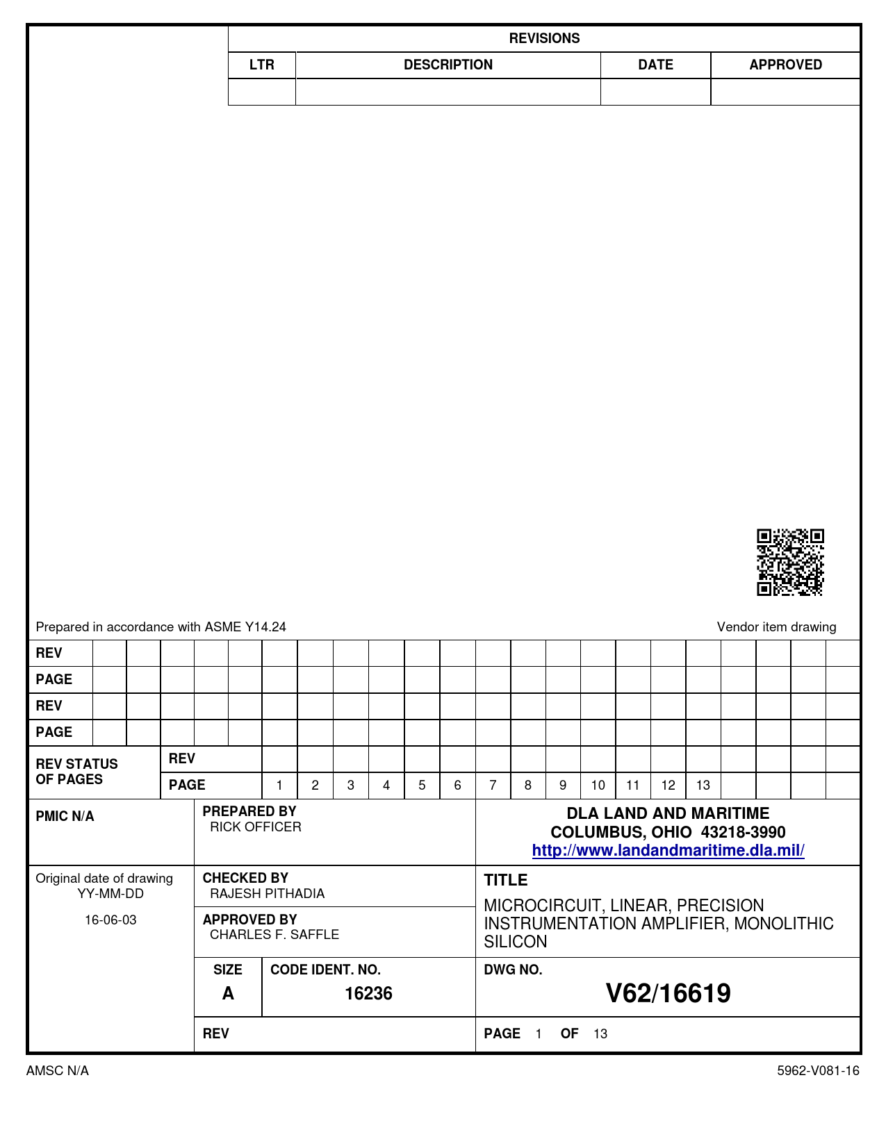 13 AMSC N/A 5962-V081-16