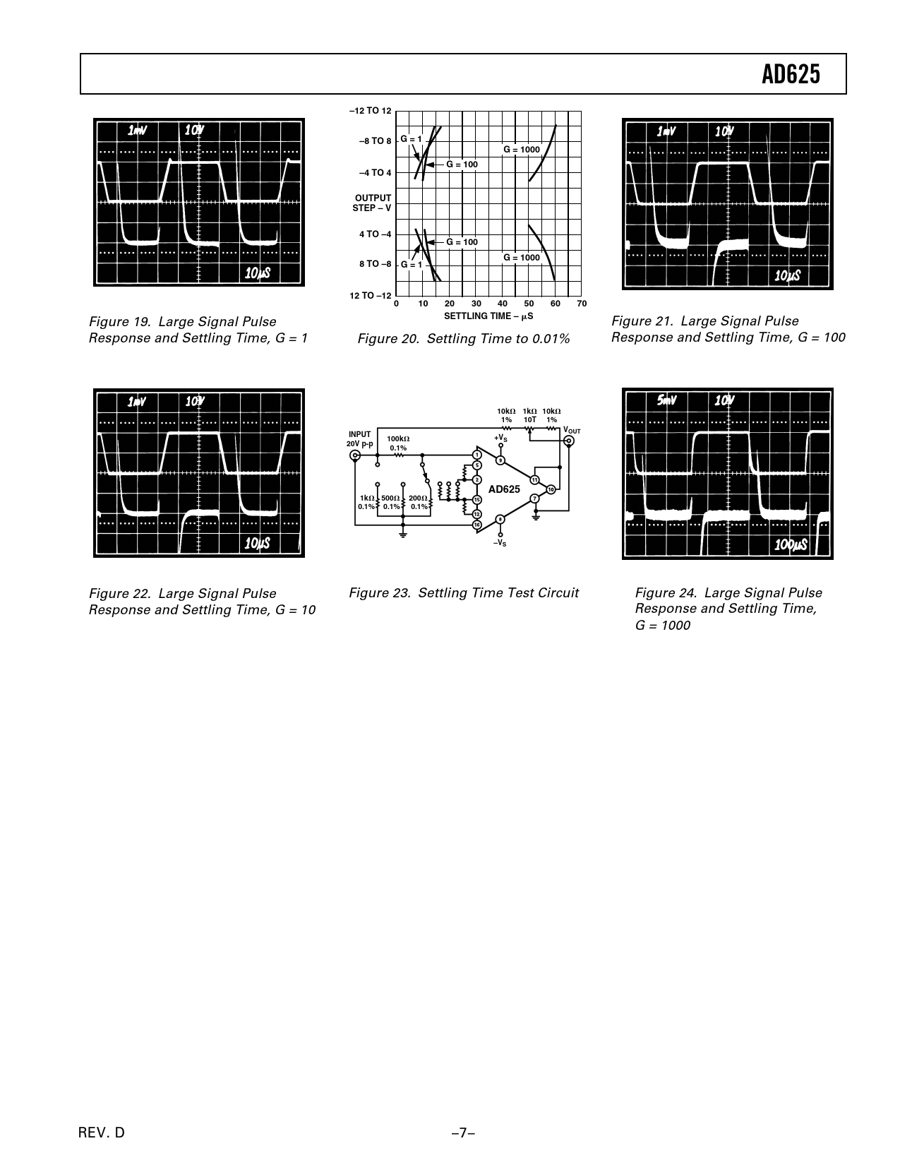 AD625. –12 TO 12. –8 TO 8. G = 1. G = 1000. G = 100. –4 TO 4. OUTPUT. STEP – V. 4 TO –4. 8 TO –8. 12 TO –12 0. SETTLING TIME –. 10k. 10T. VOUT. INPUT