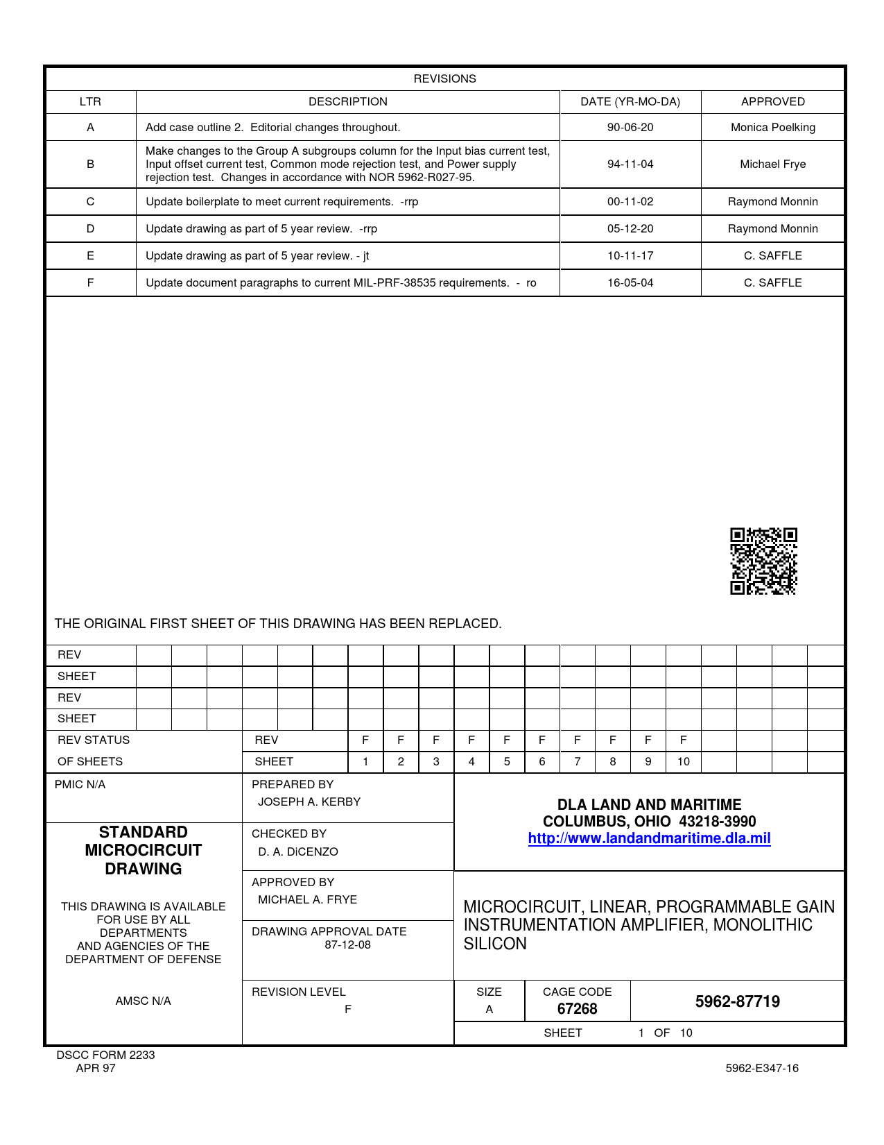 DLA LAND AND MARITIME. COLUMBUS, OHIO 43218-3990. STANDARD. http://www.landandmaritime.dla.mil. MICROCIRCUIT. DRAWING. 5962-87719