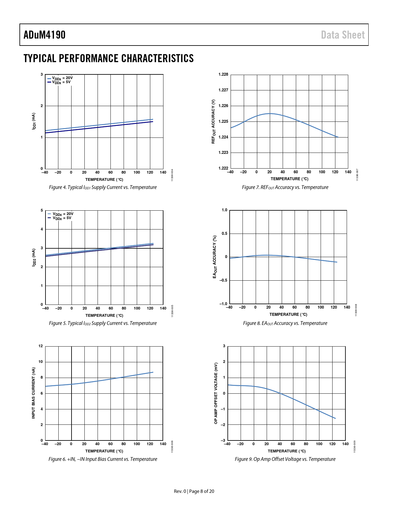 ADuM4190. Data Sheet. TYPICAL PERFORMANCE CHARACTERISTICS. 1.228. VDDx = 20V. VDDx = 5V. 1.227. (V). 1.226. ) A (m. 1.225. I DD1. ACCURAC. UT O
