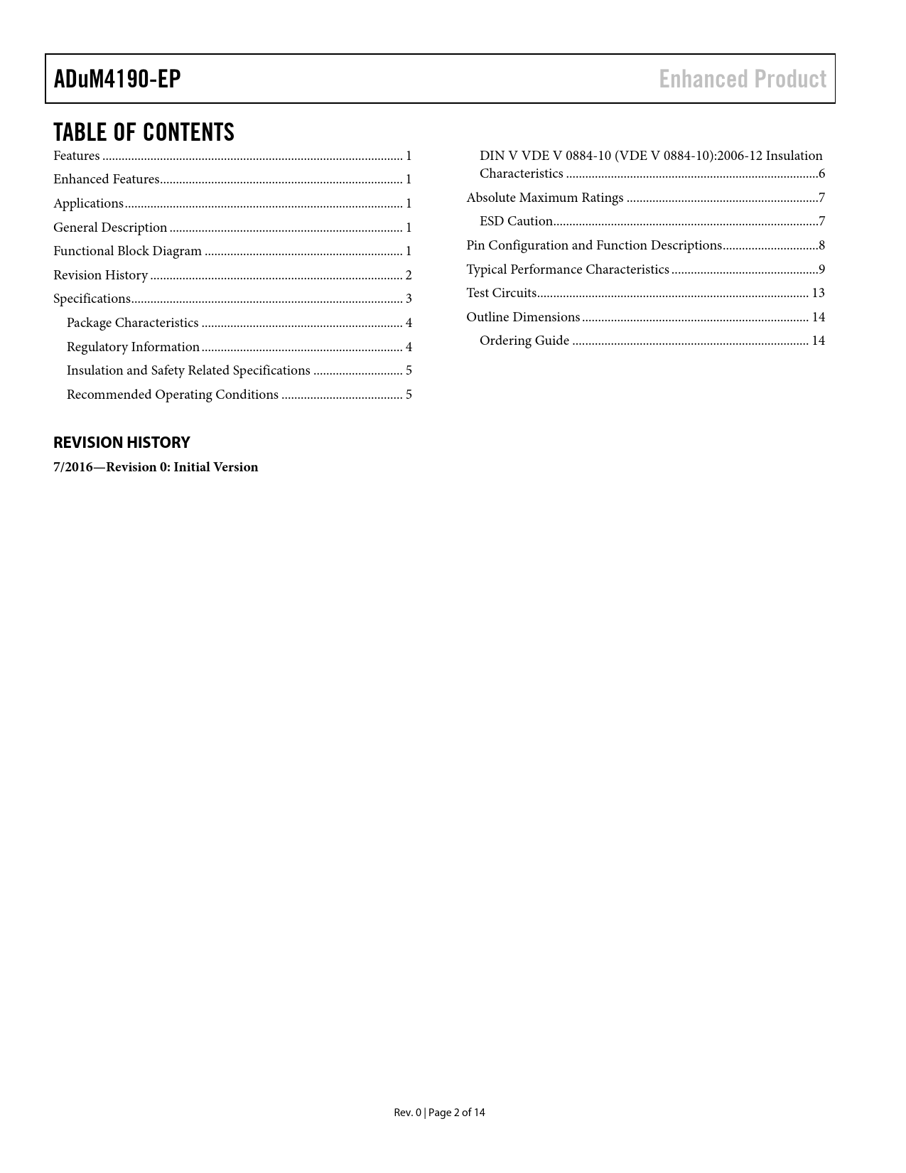 页数 / 页14 / 2 — ADuM4190-EP. Enhanced Product. TABLE OF CONTENTS. REVISION HISTORY …