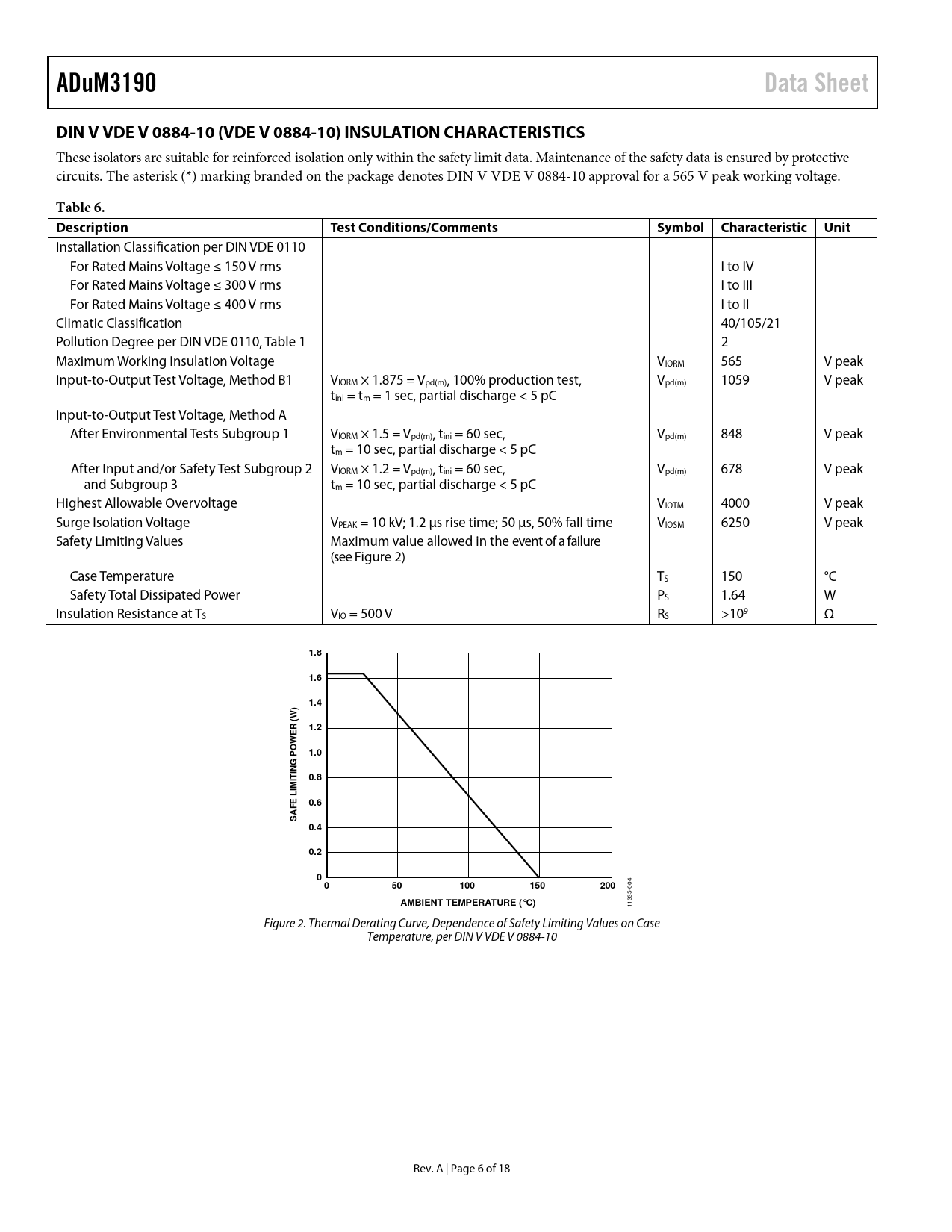 ADuM3190. Data Sheet. DIN V VDE V 0884-10 (VDE V 0884-10) INSULATION CHARACTERISTICS. Table 6. Description
