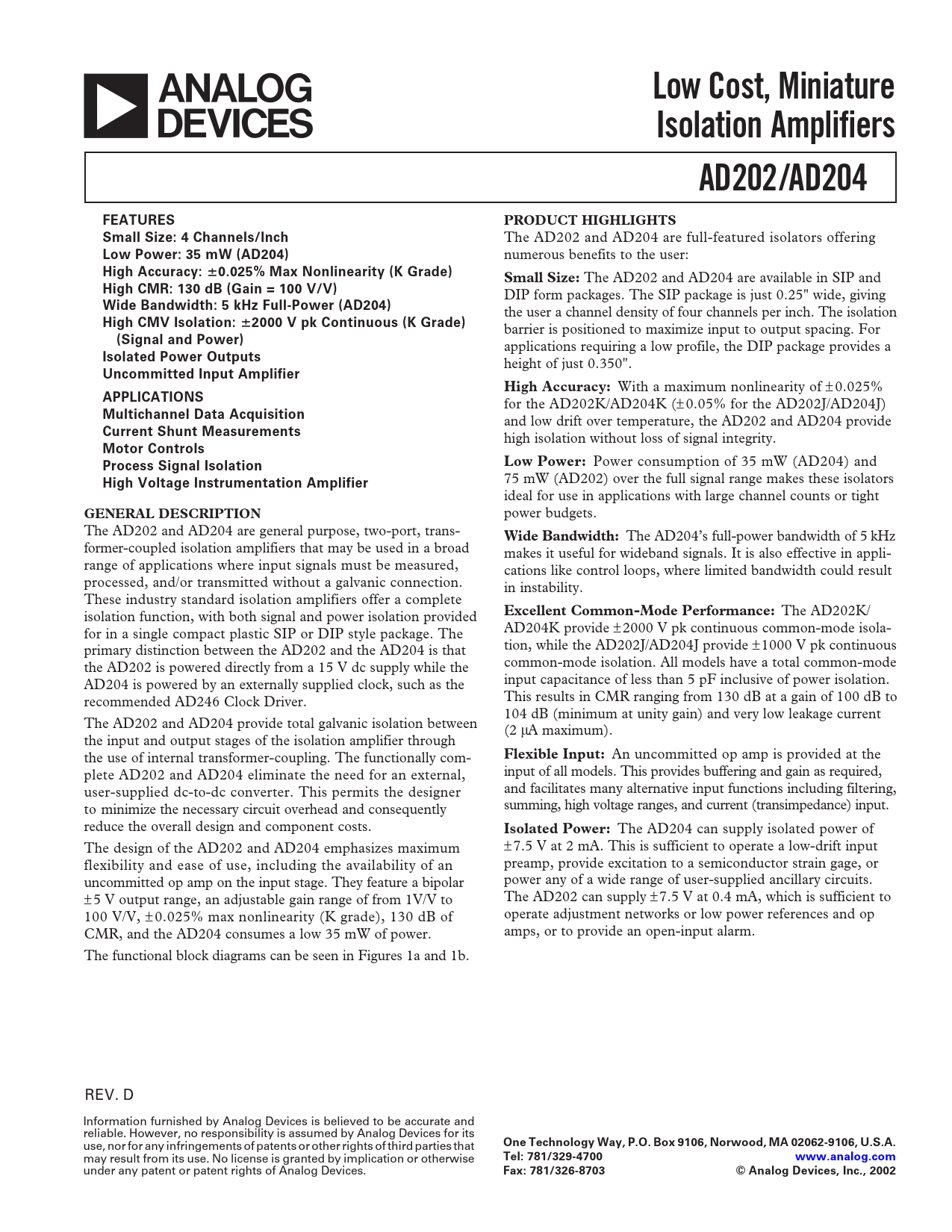 for the AD202K/AD204K (± 0.05% for the AD202J/AD204J)