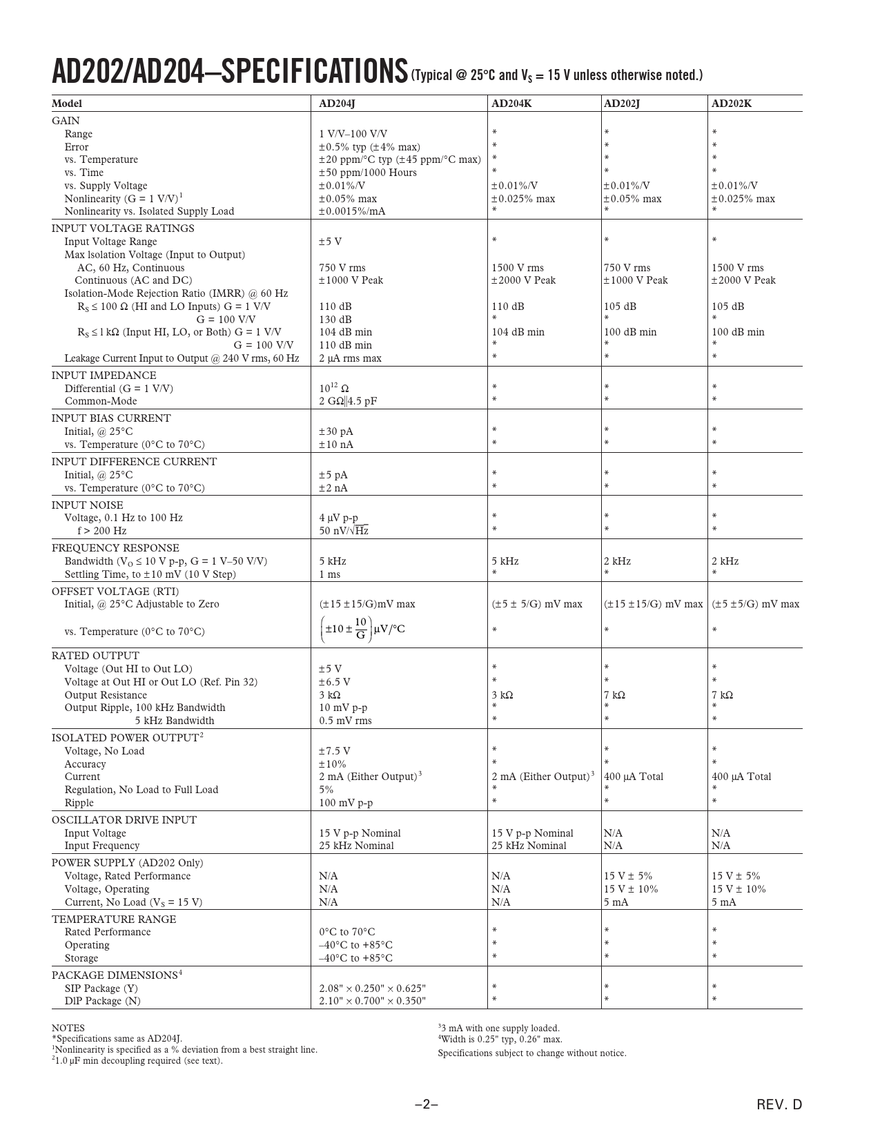 Datasheet AD202, AD204 (Analog Devices) - 2