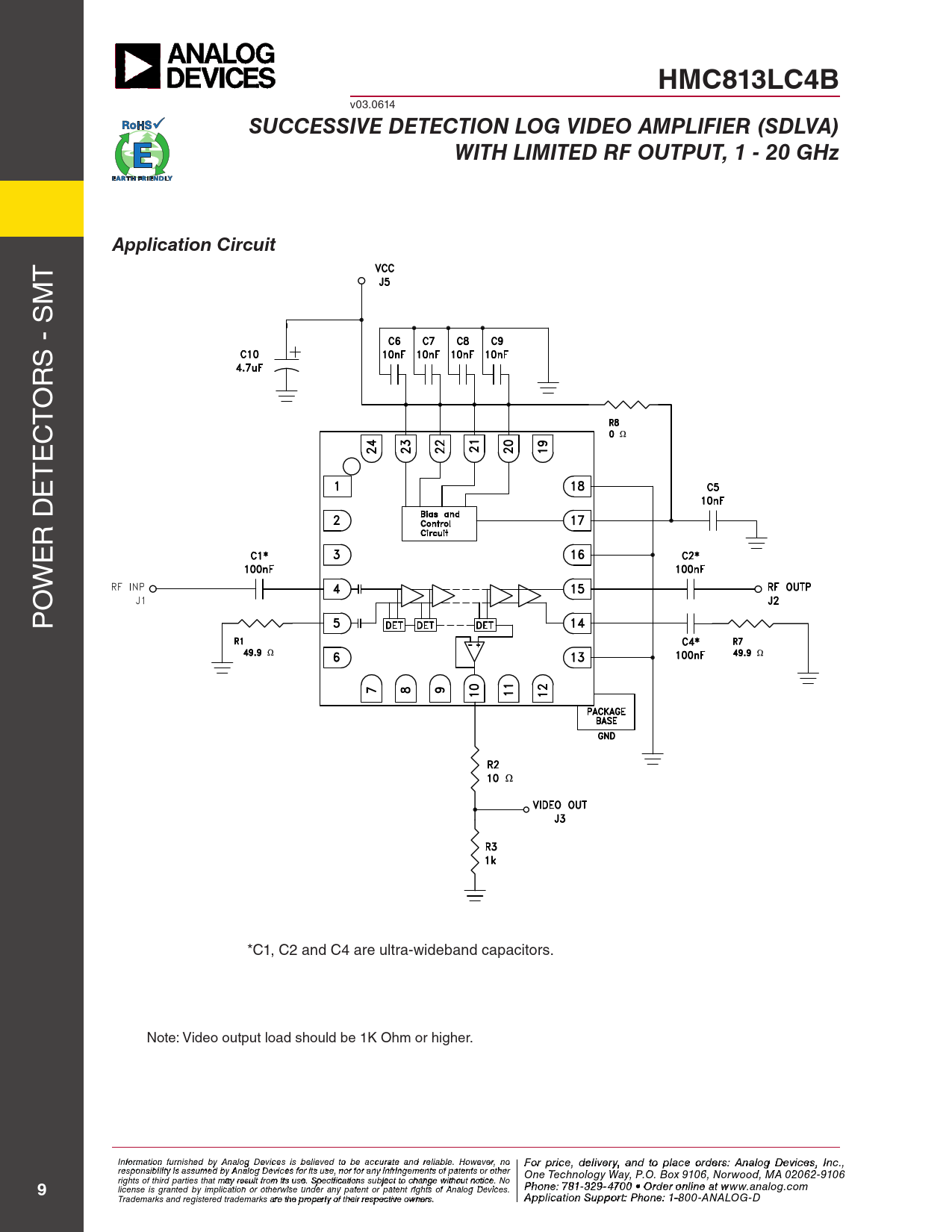 HMC813LC4B. SUCCESSIVE DETECTION LOG VIDEO AMPLIFIER (SDLVA). WITH LIMITED RF OUTPUT, 1 - 20 GHz. Application Circuit