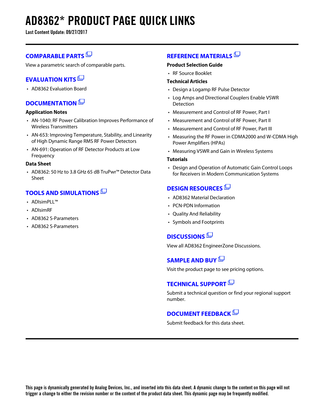 This page is dynamically generated by Analog Devices, Inc., and inserted into this data sheet. A dynamic change to the content on this page will not trigger a change to either the revision number or the content of the product data sheet. This dynamic page may be frequently modified.