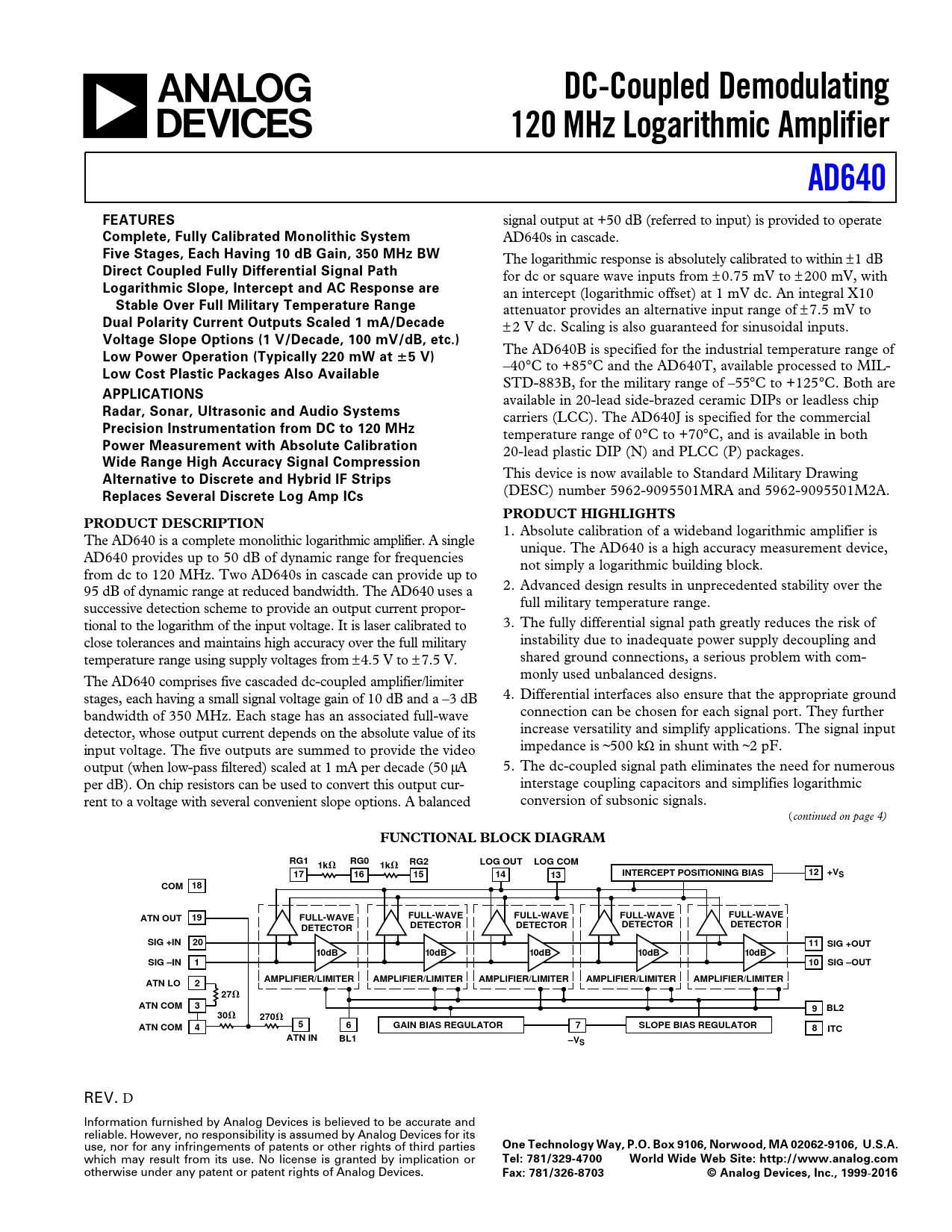 Datasheet AD640 (Analog Devices)