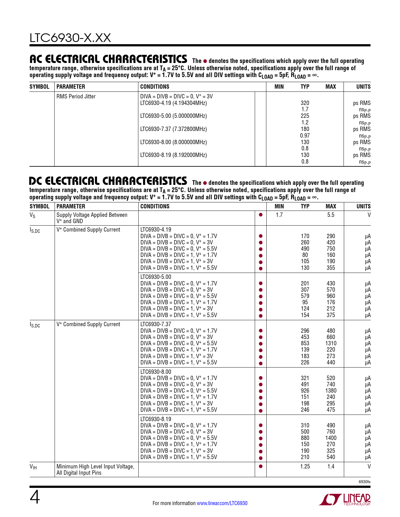 Datasheet LTC6930-X.XX (Analog Devices) - 4