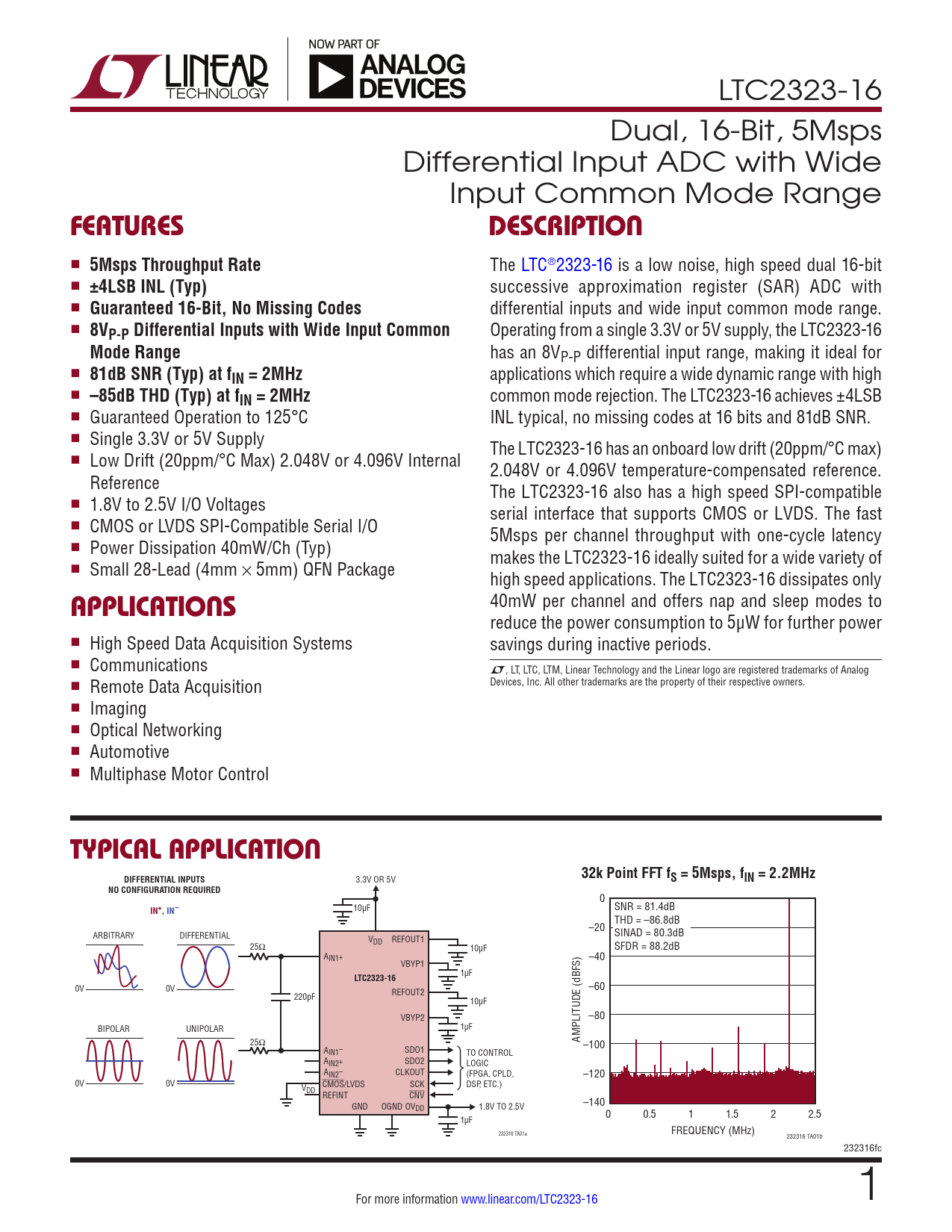 Operating from a single 3.3V or 5V supply, the LTC2323-16