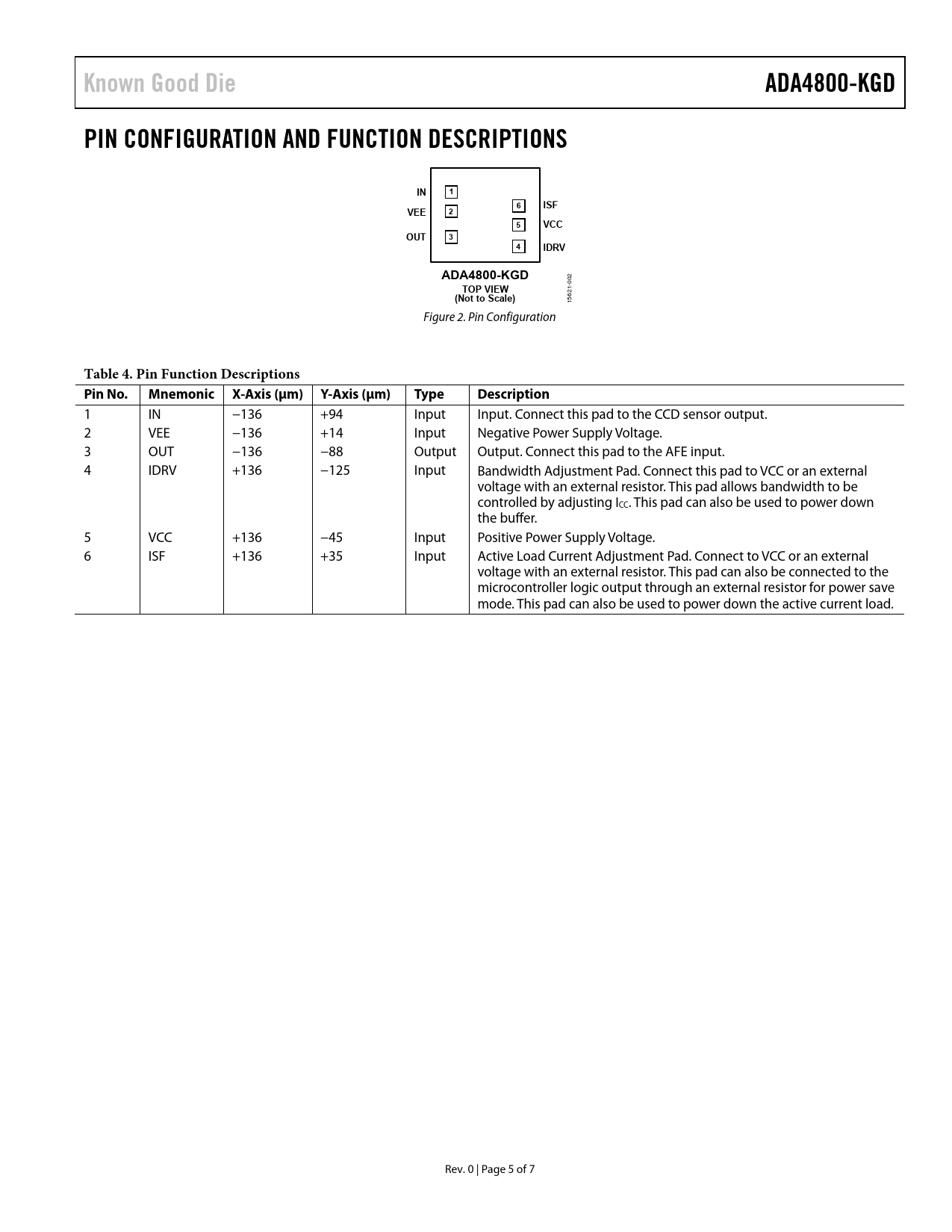 Known Good Die. ADA4800-KGD. PIN CONFIGURATION AND FUNCTION DESCRIPTIONS. ISF. VEE. VCC. OUT. IDRV. TOP VIEW. (Not to Scale)