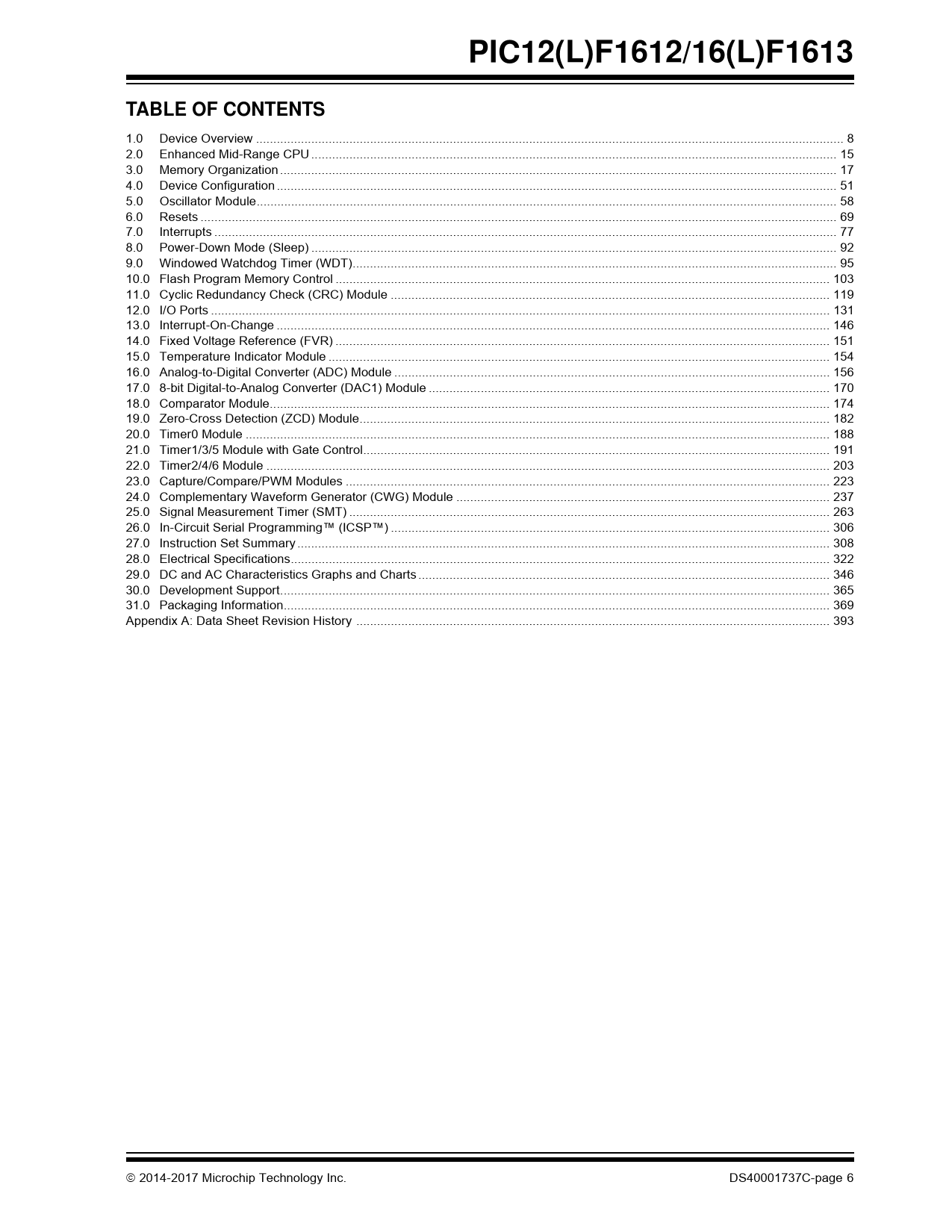 | 页数 / 页 | 397 / 6 — PIC12(L)F1612/16(L)F1613. TABLE OF CONTENTS. 1.0 Device Overview . 8. 2.0 … |
