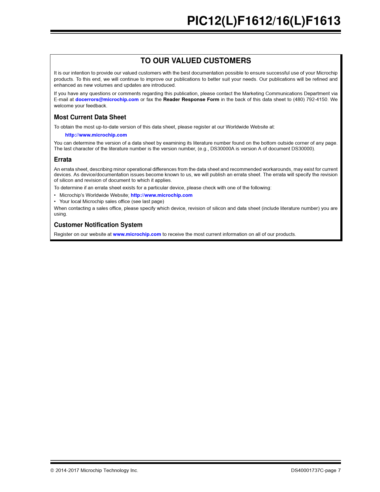 | 页数 / 页 | 397 / 7 — PIC12(L)F1612/16(L)F1613. TO OUR VALUED CUSTOMERS. … |
