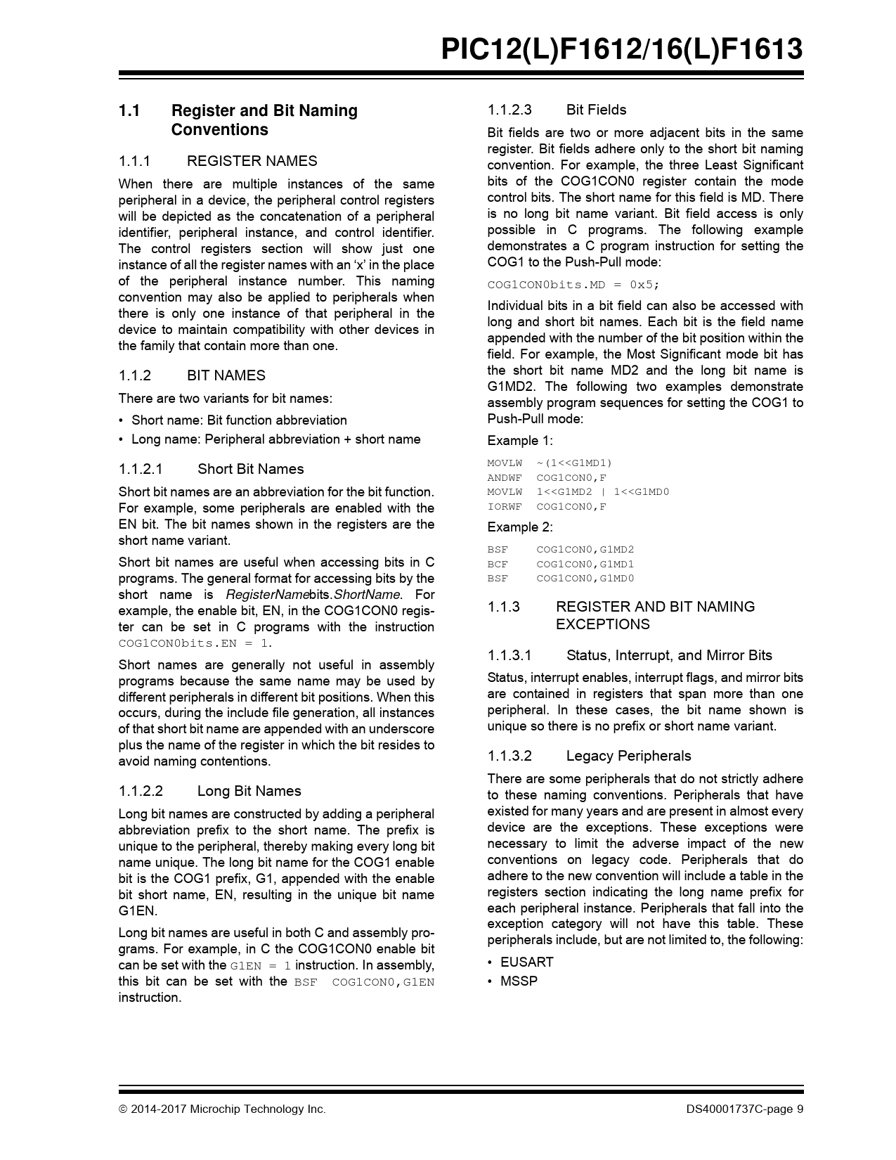 PIC12(L)F1612/16(L)F1613. 1.1. Register and Bit Naming. Conventions