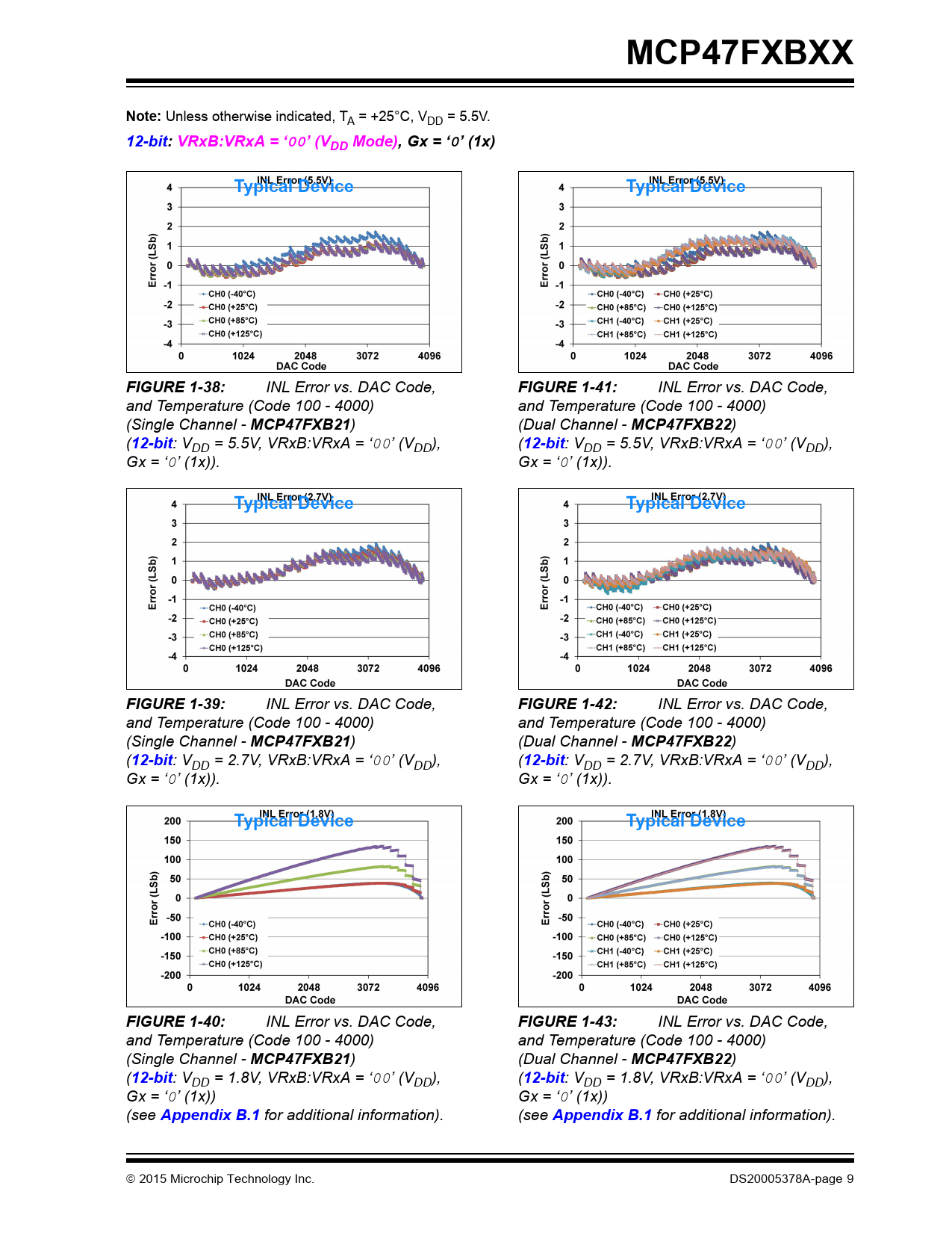 MCP47FXBXX. Note:. 12-bit: VRxB:VRxA = ‘00’ (VDD Mode),. Gx = ‘0’ (1x). Typical Device. FIGURE 1-38:. FIGURE 1-41:. MCP47FXB21