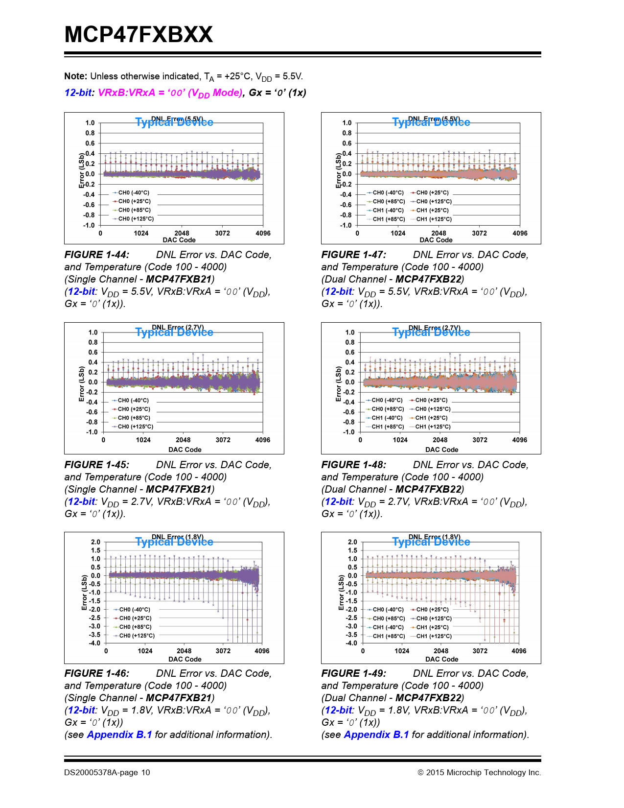 MCP47FXBXX. Note:. 12-bit: VRxB:VRxA = ‘00’ (VDD Mode),. Gx = ‘0’ (1x). Typical Device. FIGURE 1-44:. FIGURE 1-47:. MCP47FXB21