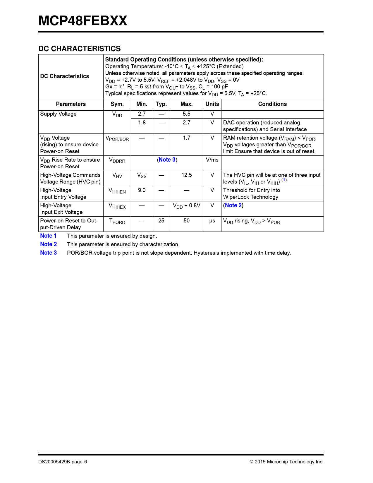 | 页数 / 页 | 92 / 6 — MCP48FEBXX. DC CHARACTERISTICS. Standard Operating Conditions (unless … |