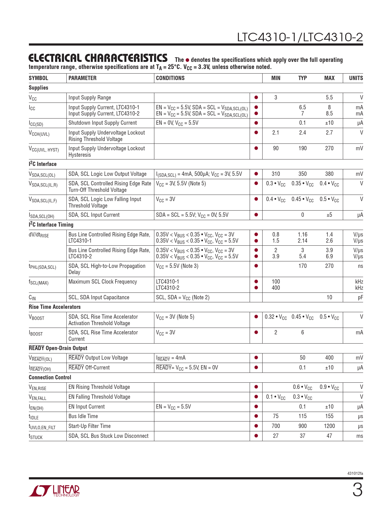 Datasheet LTC4310-1, LTC4310-2 (Analog Devices) - 3