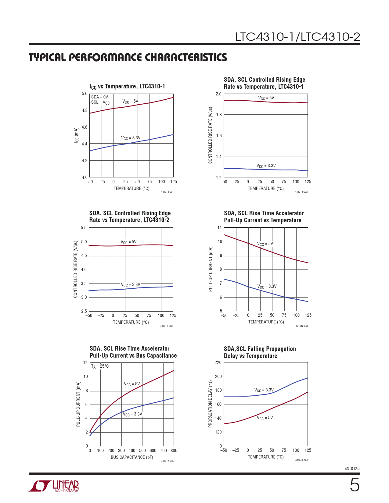 Typical perForMance characTerisTics SDA, SCL Controlled Rising Edge ICC vs Temperature, LTC4310-1 Rate vs Temperature, LTC4310-1