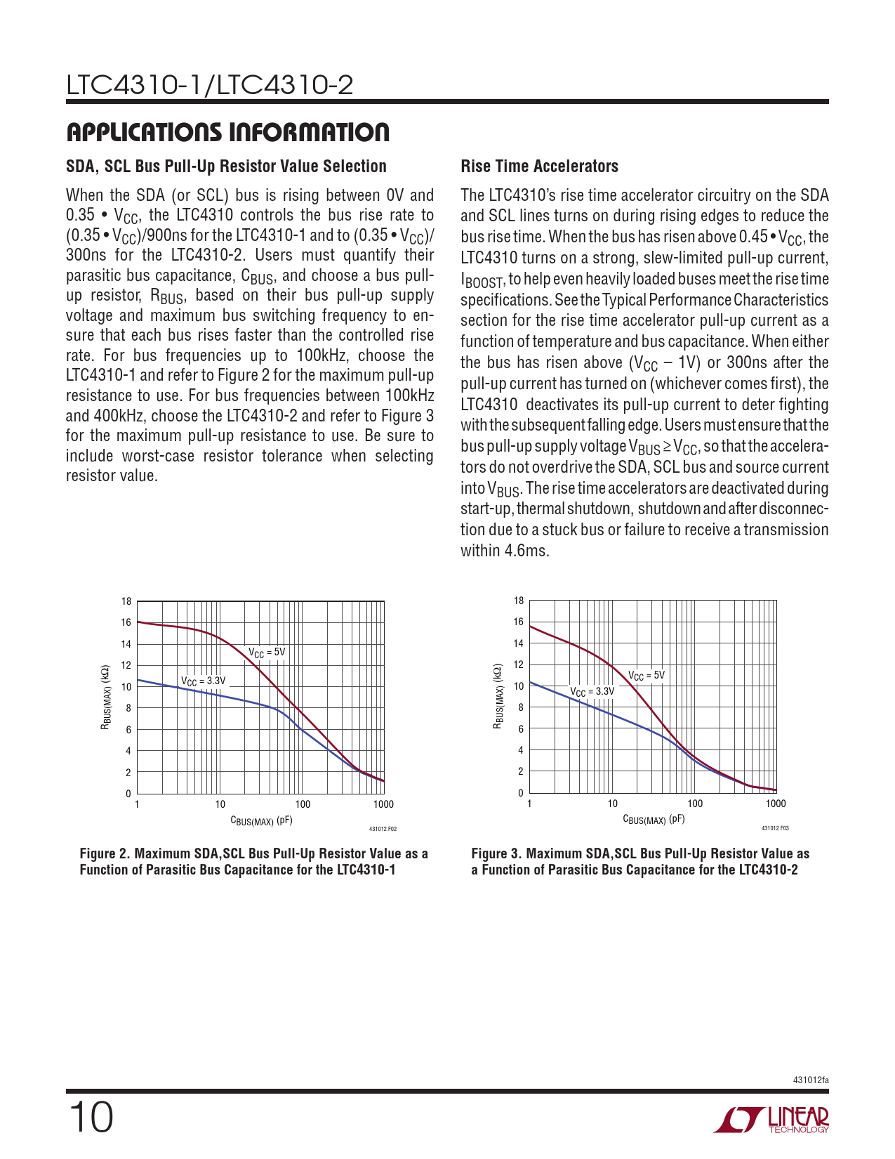 页数 / 页20 / 10 — applicaTions inForMaTion SDA, SCL Bus Pull-Up Resistor Value Selection. …