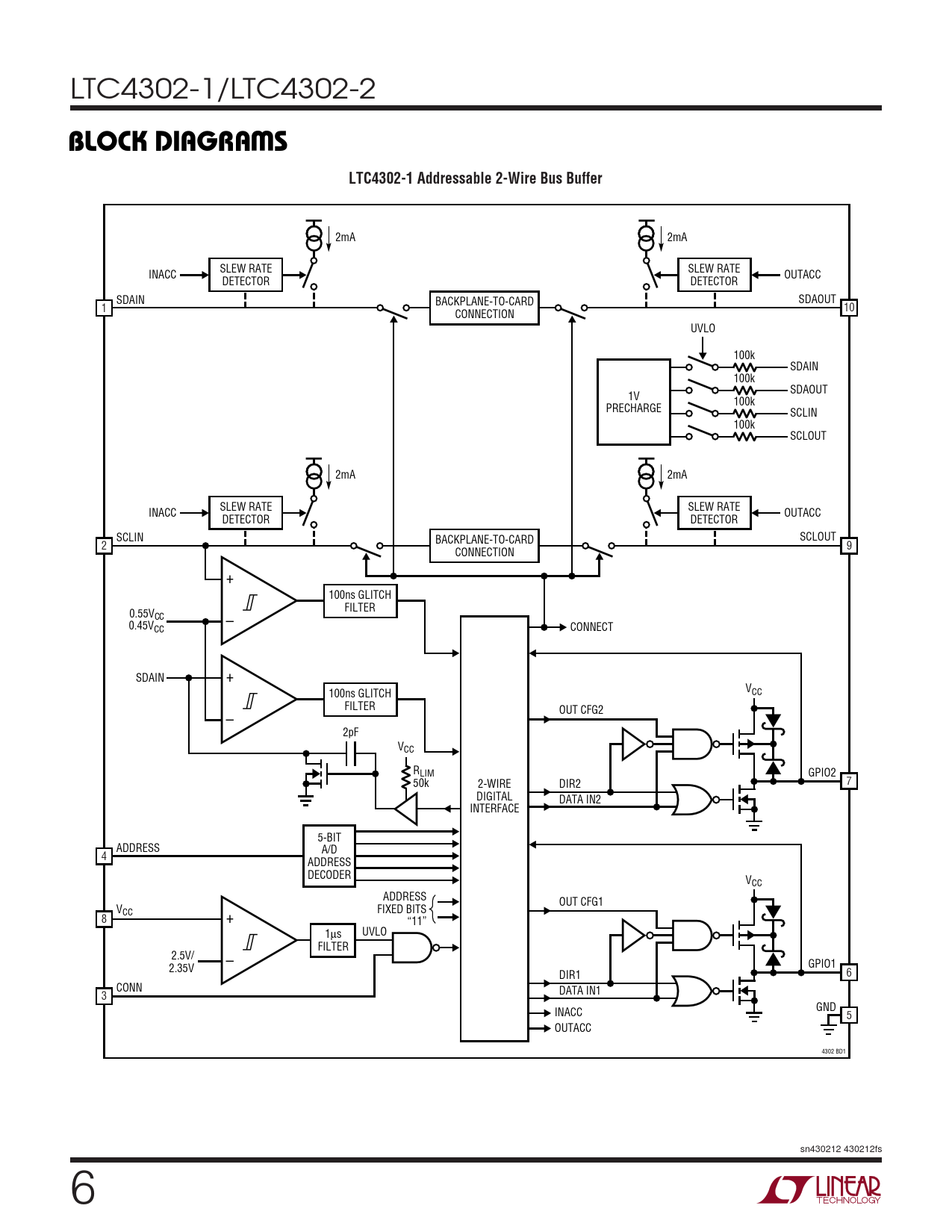 BLOCK DIAGRA S. LTC4302-1 Addressable 2-Wire Bus Buffer