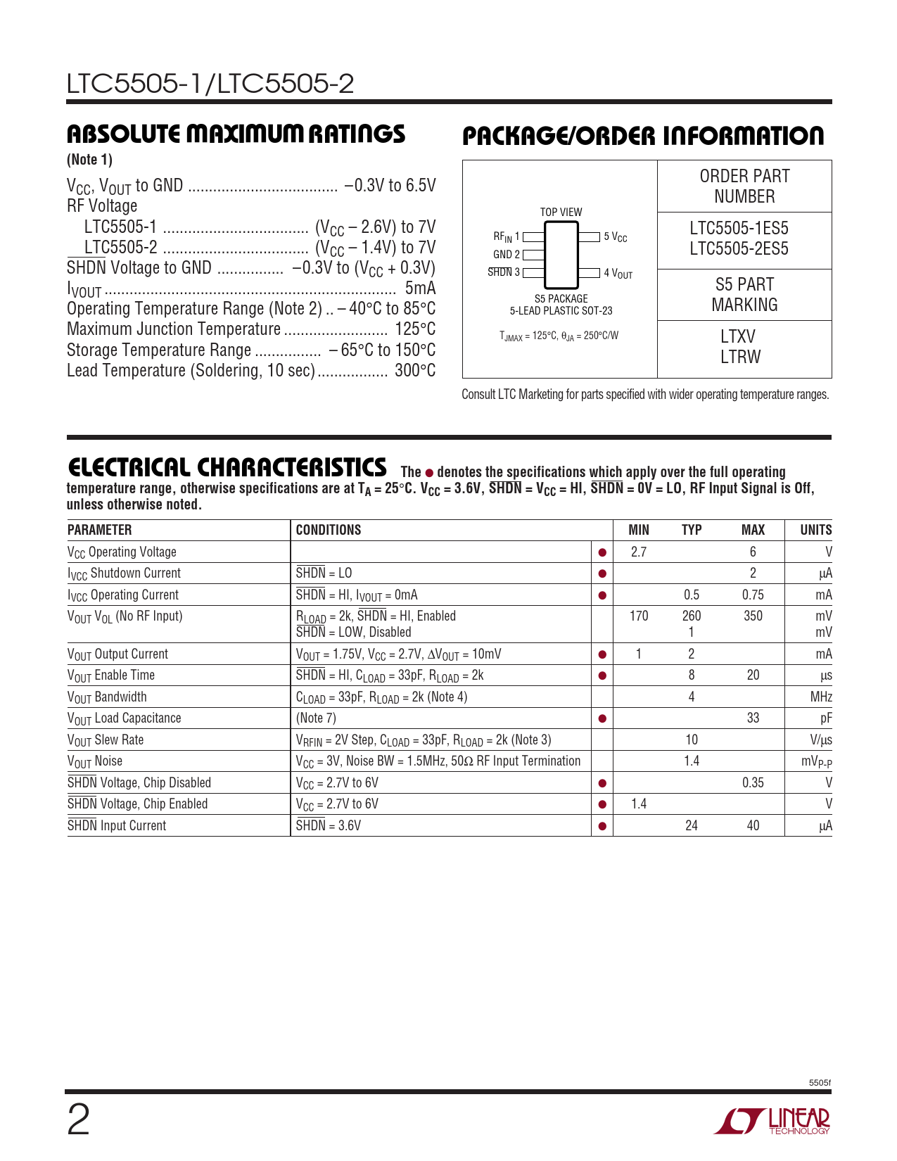 Datasheet LTC5505-1, LTC5505-2 (Analog Devices) - 2