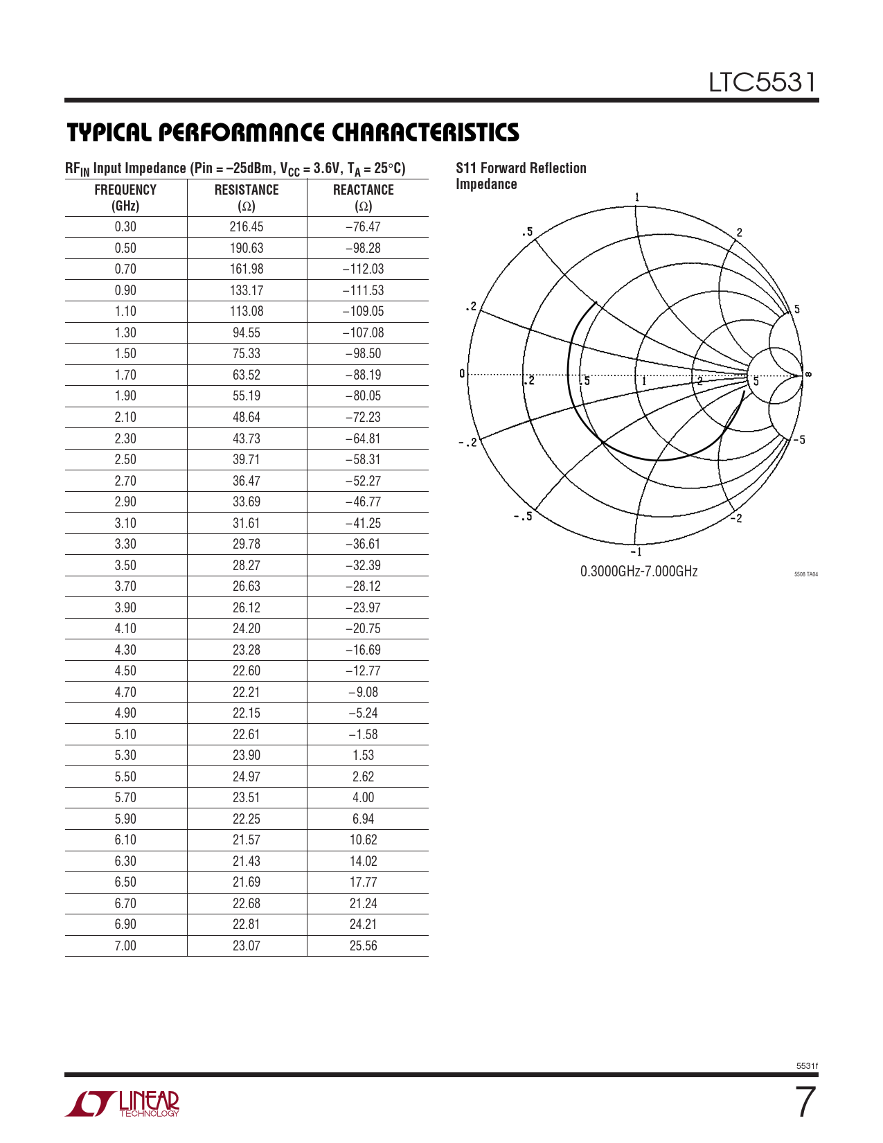 TYPICAL PERFOR A CE CHARACTERISTICS. S11 Forward Reflection. IN Input Impedance (Pin = –25dBm, VCC = 3.6V, TA = 25. Impedance
