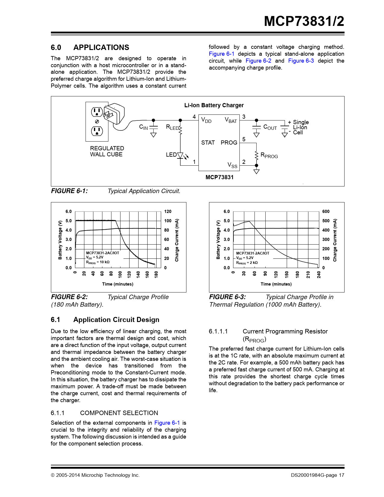 页数 / 页28 / 17 — MCP73831/2. 6.0. APPLICATIONS. Li-Ion Battery Charger. MCP73831. FIGURE …